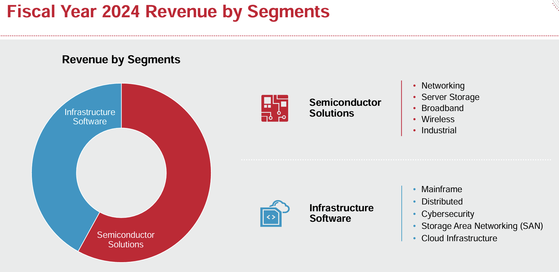 브로드컴은 엔터프라이즈 소프트웨어, 사이버 보안, 데이터 센터 연결 솔루션 등 다양한 제품 포트폴리오를 보유한 기업입니다. 하지만 최근 주가 상승을 이끄는 주요 요소는 AI 관련 사업입니다.