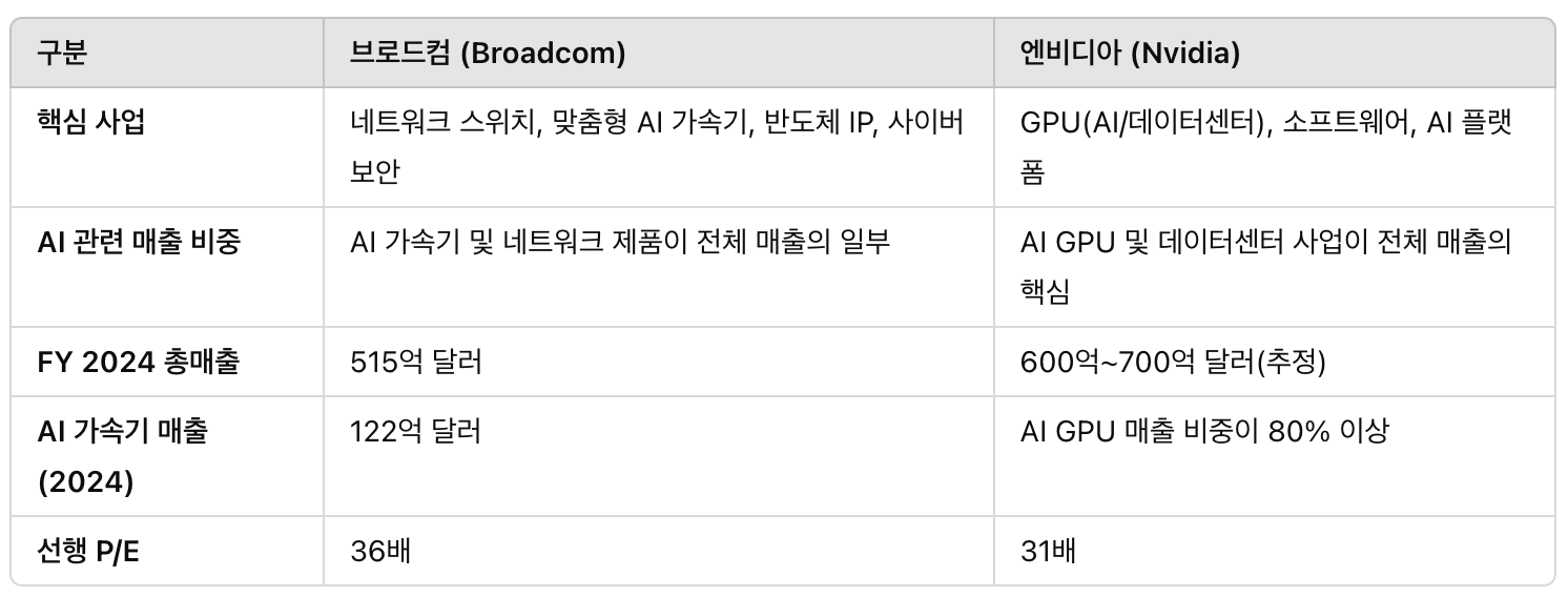 🔹 브로드컴과 엔비디아, 사업 구조 차이