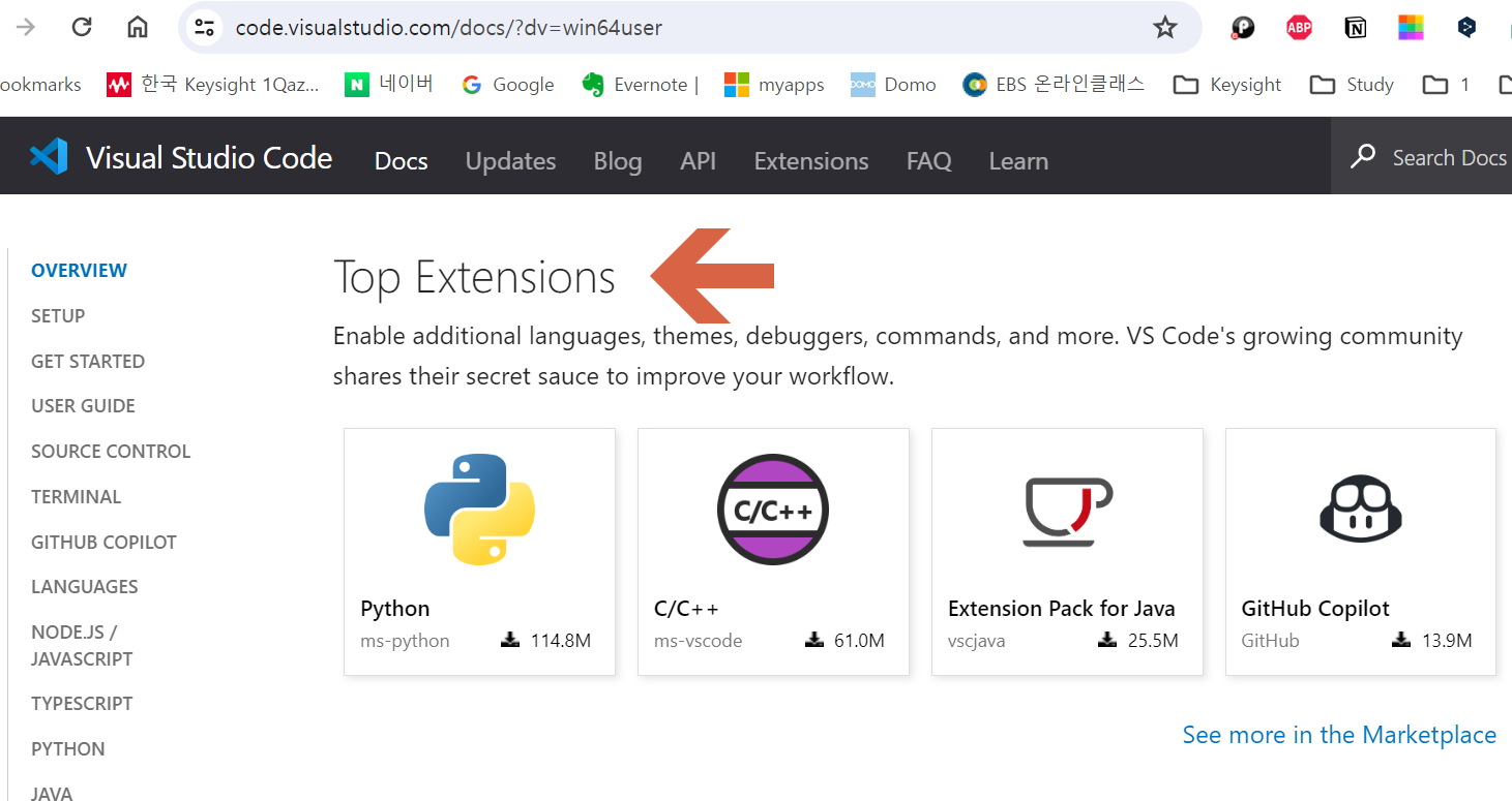 - 뛰어난 확장성: 마켓플레이스를 통해 제공되는 수천 개의 확장 프로그램으로 개발 환경을 맞춤 설정하고 기능을 추가할 수 있습니다. 이를 통해 거의 모든 유형의 개발 작업을 지원할 수 있습니다.