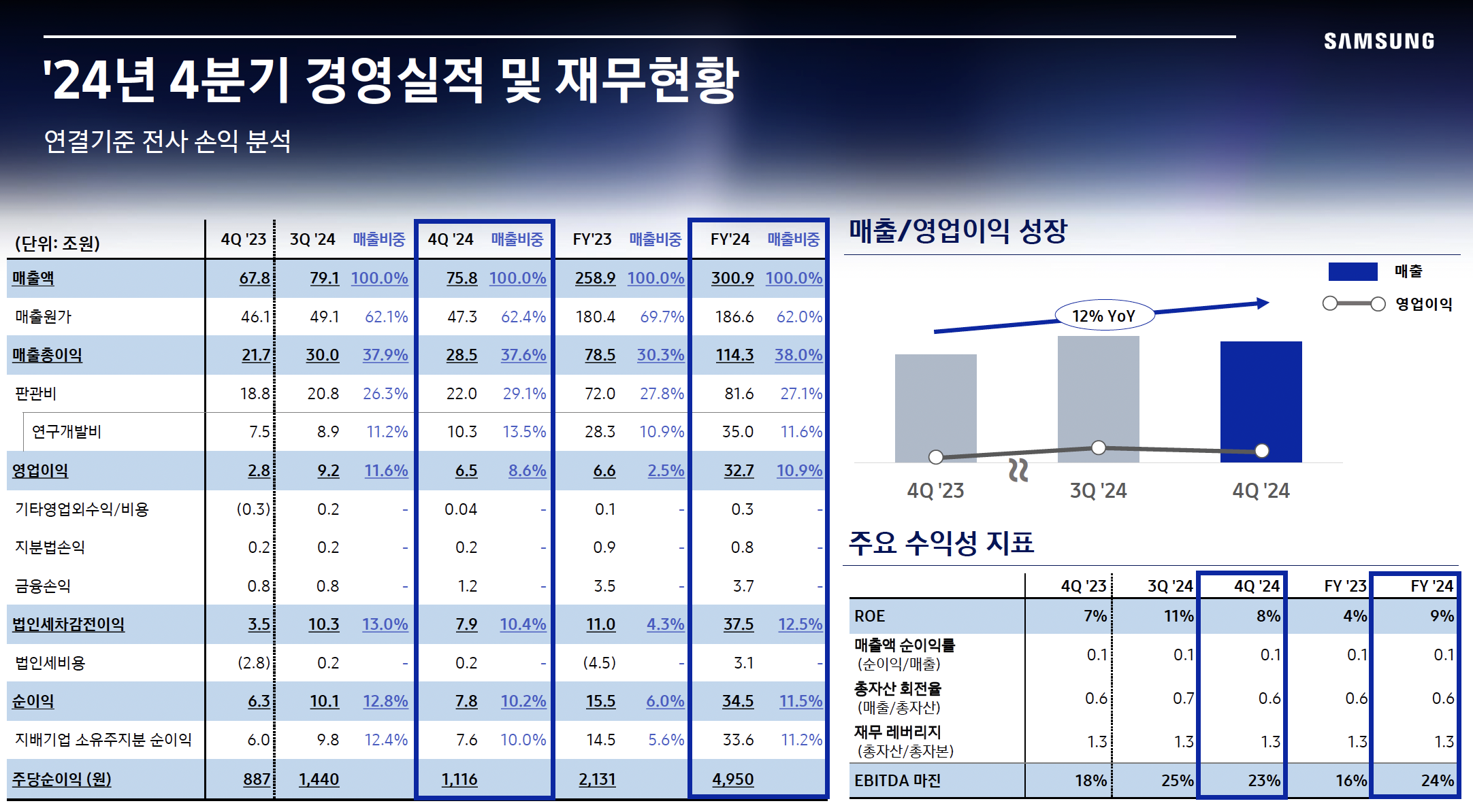 반도체 시장이 침체기를 겪으며 삼성전자의 실적도 한동안 부진했지만, 2024년 영업이익 32조 원을 기록하며 2023년(6조 원) 대비 강한 반등을 보였다. 그럼에도 불구하고 삼성전자의 주가는 여전히 역사적 저평가 구간에 머물러 있으며, 시장에서는 삼성전자가 침몰하는 기업인지, 다시 도약할 가능성이 있는 기업인지에 대해 논쟁이 계속되고 있다.
