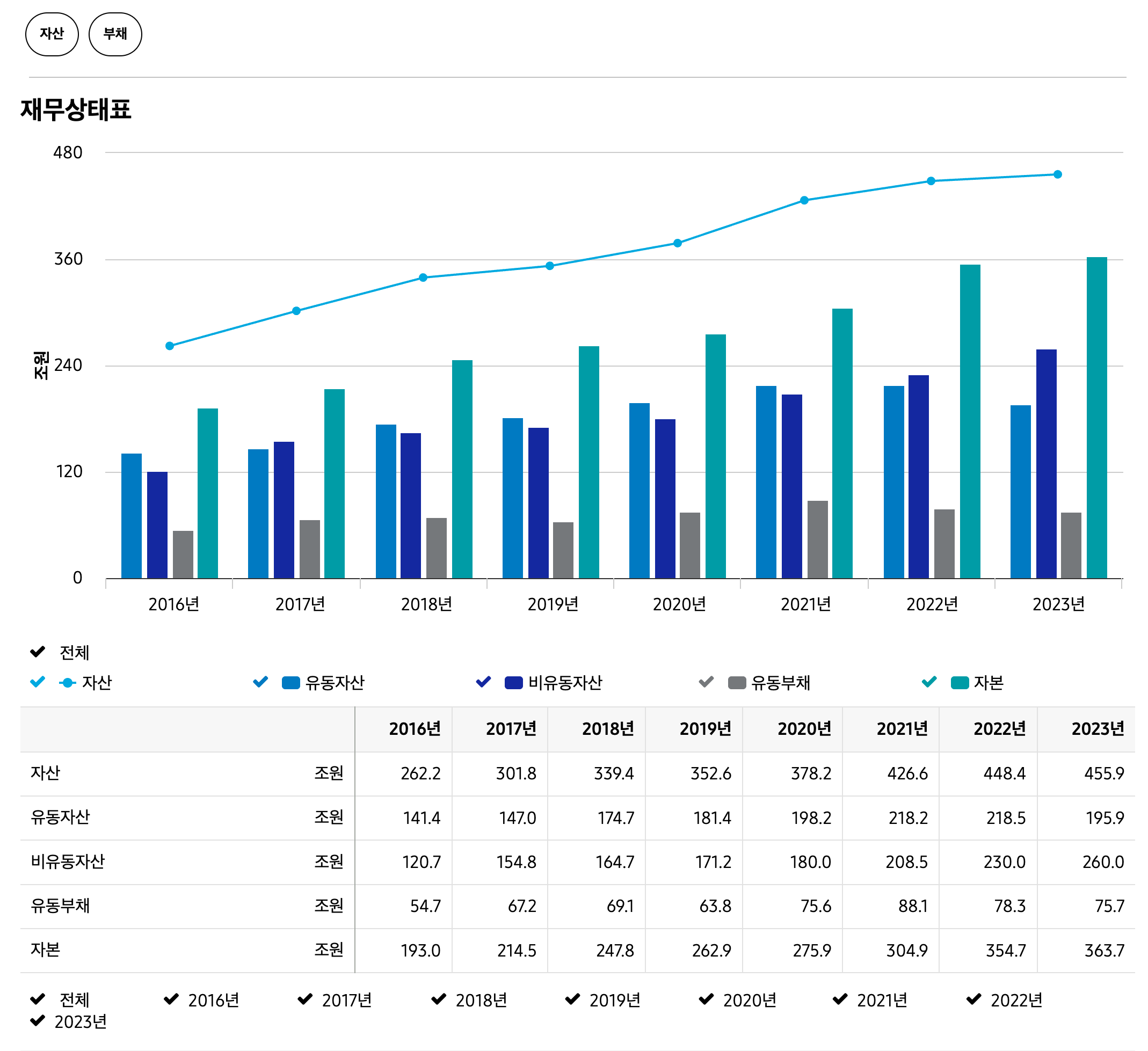 - 자본: 402조 원
