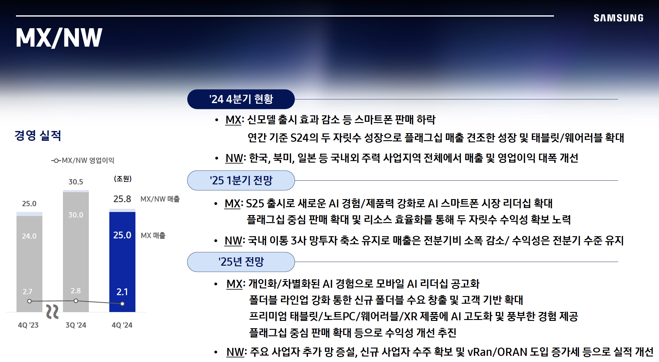 - DX 부문의 XR/AR 생태계 확장을 통해 새로운 성장 동력을 찾고 있으며,