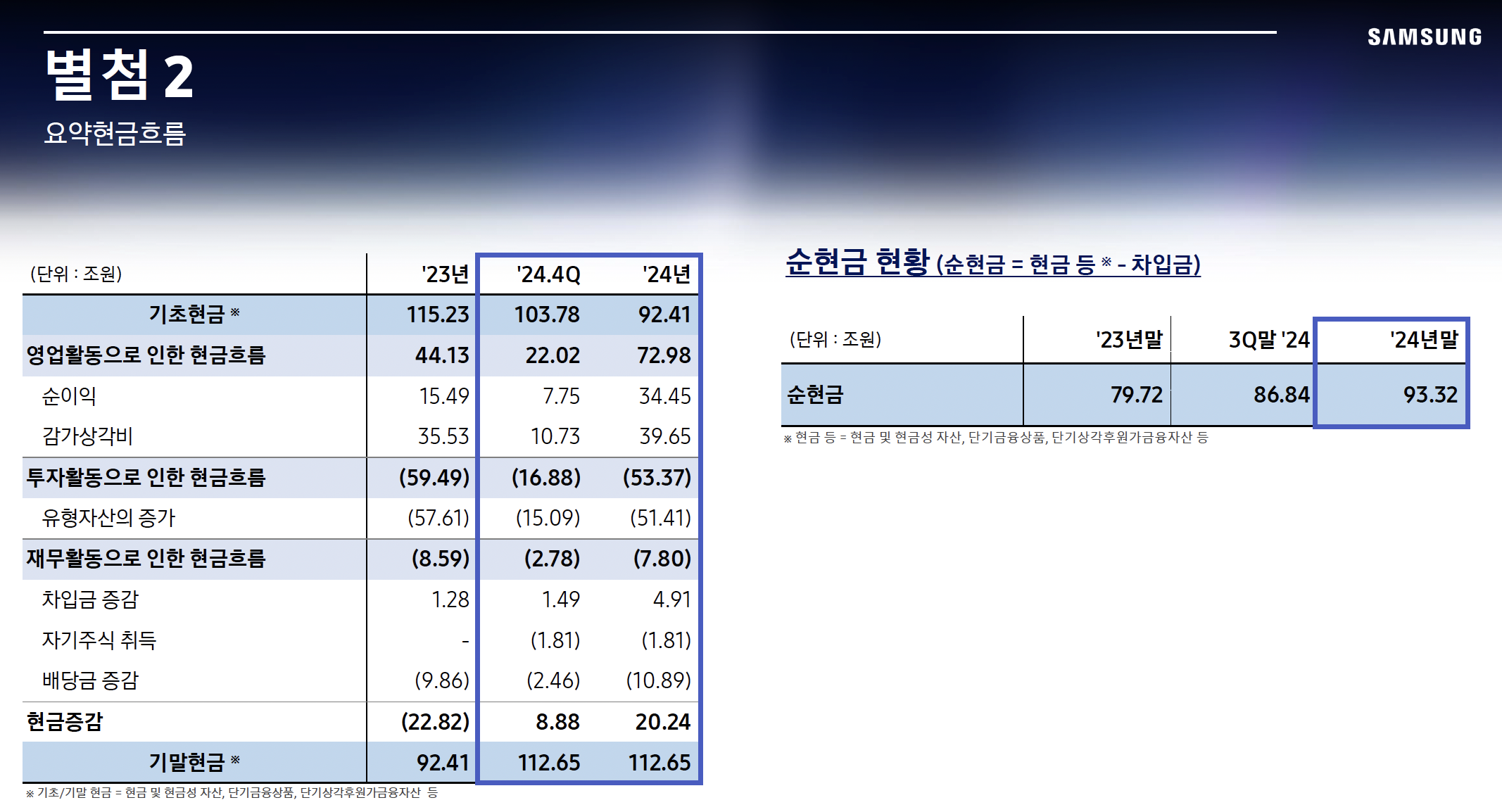 - 현금보유액: 100조 원 이상