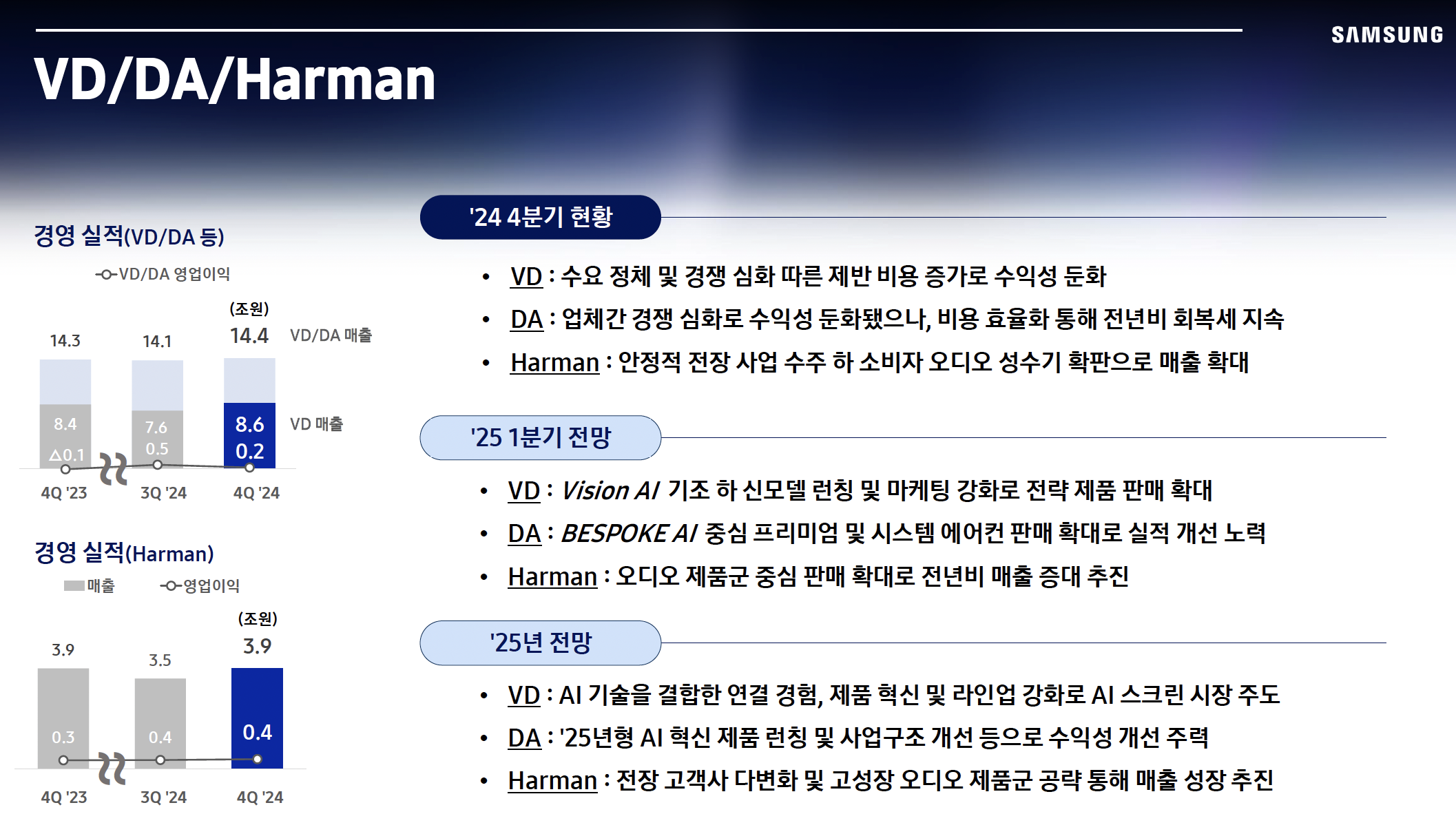 하만은 전기차, 자율주행차 시대에 맞춰 차량 내 AI 및 IoT 기능을 확장하며 성장 가능성이 높은 사업부로 평가된다.