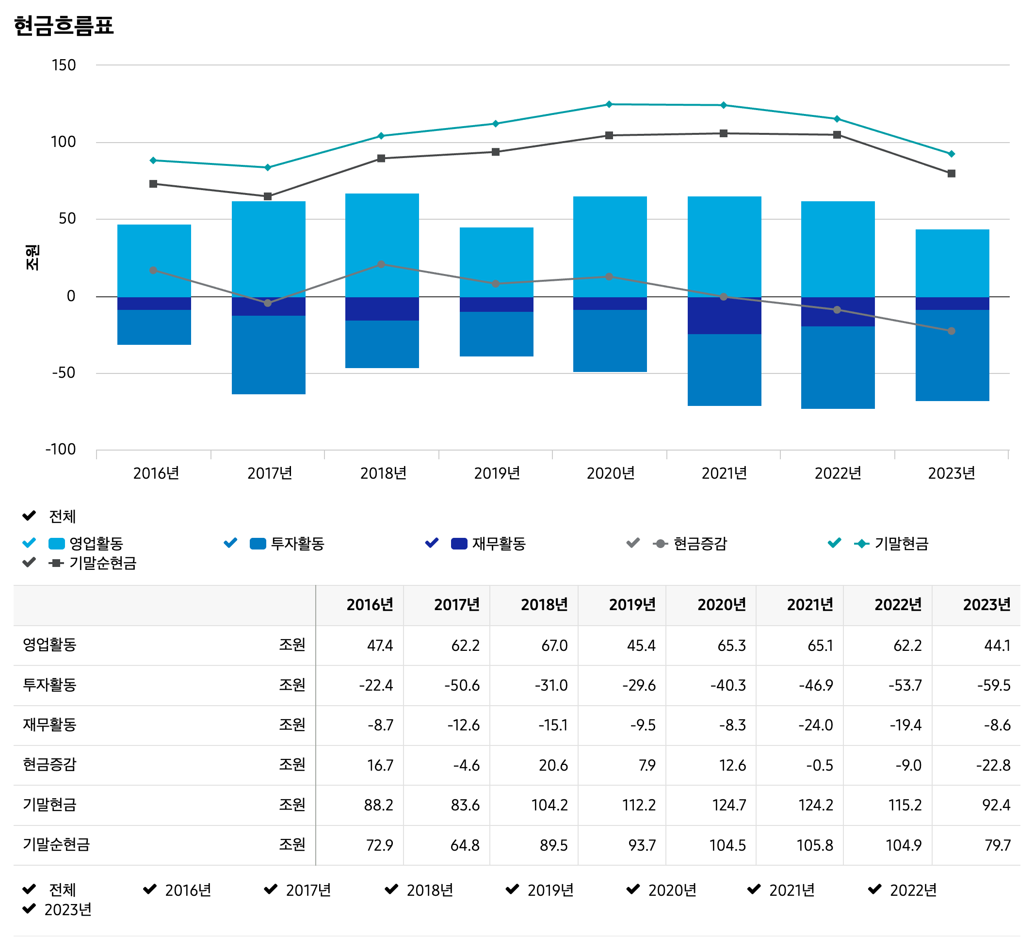 - 현금보유액: 100조 원 이상