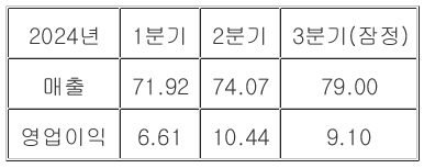 삼성전자의 2024년 3분기 매출은 79조 원으로, 사상 최대치를 기록했습니다. 이는 작년 동기 대비 17.21% 증가한 수치로, 삼성전자가 글로벌 시장에서 꾸준히 성장을 이어가고 있음을 보여줍니다. 하지만 영업이익은 9조 1천억 원에 그쳤는데, 이는 전년 대비 274.49% 증가한 것이지만, 당초 시장에서 기대했던 10조 3천억 원에 크게 미치지 못한 결과였습니다. 이로 인해 일부 투자자들 사이에서는 실적에 대한 실망감이 나타났습니다.