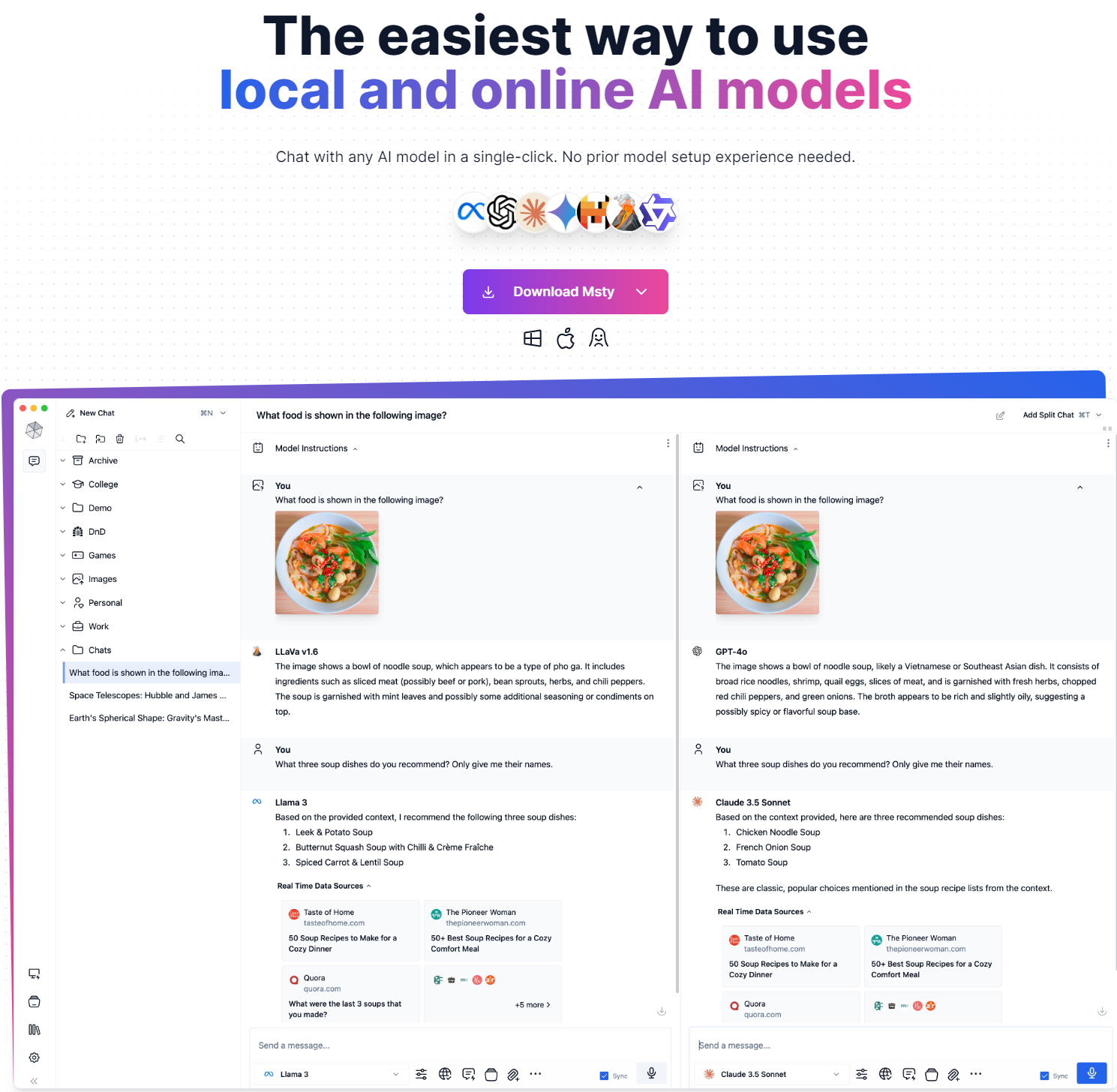 Msty는 창의적인 콘텐츠 작성 기능을 강조합니다.