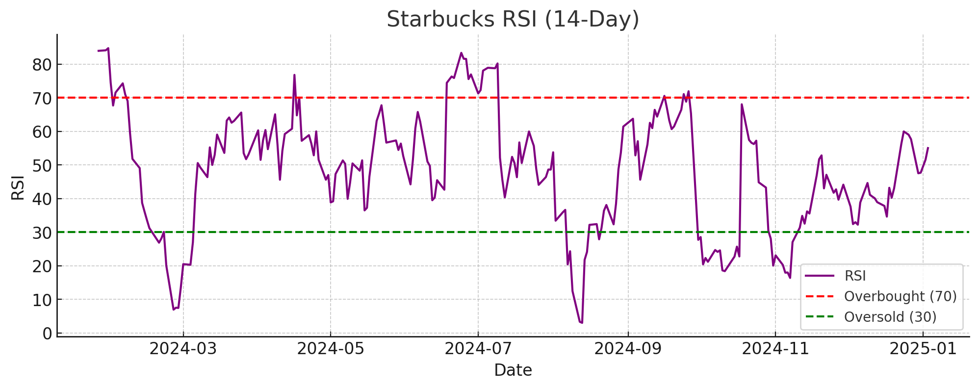 현재 스타벅스는 높은 브랜드 충성도와 지속적인 매출 성장 가능성을 보유하고 있으나, 인건비, 원자재 비용 상승, 마케팅 전략의 한계와 같은 비용 문제는 투자자들이 신중한 접근을 필요로 하게 만듭니다. 이러한 평가 지표와 시장 환경을 고려했을 때, 단기적으로는 주가의 변동성이 클 가능성이 있습니다.