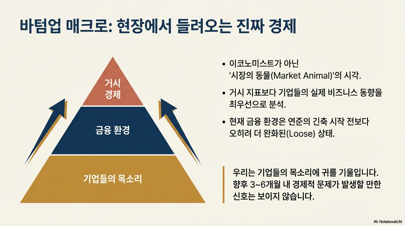 대부분의 투자자는 현재의 실적 발표나 뉴스 헤드라인에 일희일비합니다. 하지만 드러켄밀러는 "현재의 지표가 아닌, 18~24개월 뒤의 시나리오를 그리라"고 조언합니다. 그는 스스로를 경제학자보다는 '시장의 동물(Market animal)'로 정의하며, 바텀업(Bottom-up) 방식의 매크로 접근법을 구사합니다.