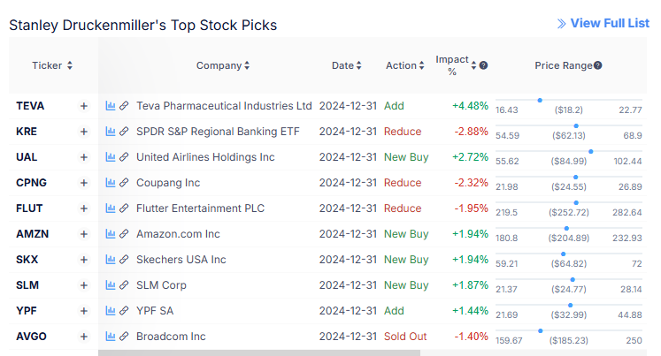 - 드러켄밀러는 **테바(TEVA)**를 530% 이상 늘리며 성장 가능성을 향한 결단력을 보여주었습니다.