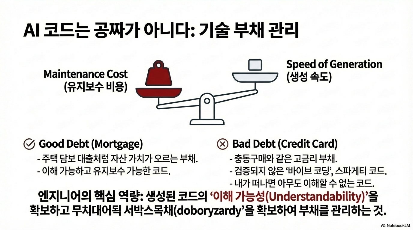 AI 덕분에 무언가를 '만드는' 행위가 그 어느 때보다 저렴하고 빨라진 지금, 당신이 어떤 '품질'의 결과물을 만들고 어떤 부채를 떠안는지가 경력의 성패를 가르는 결정적 요인이 될 것입니다.