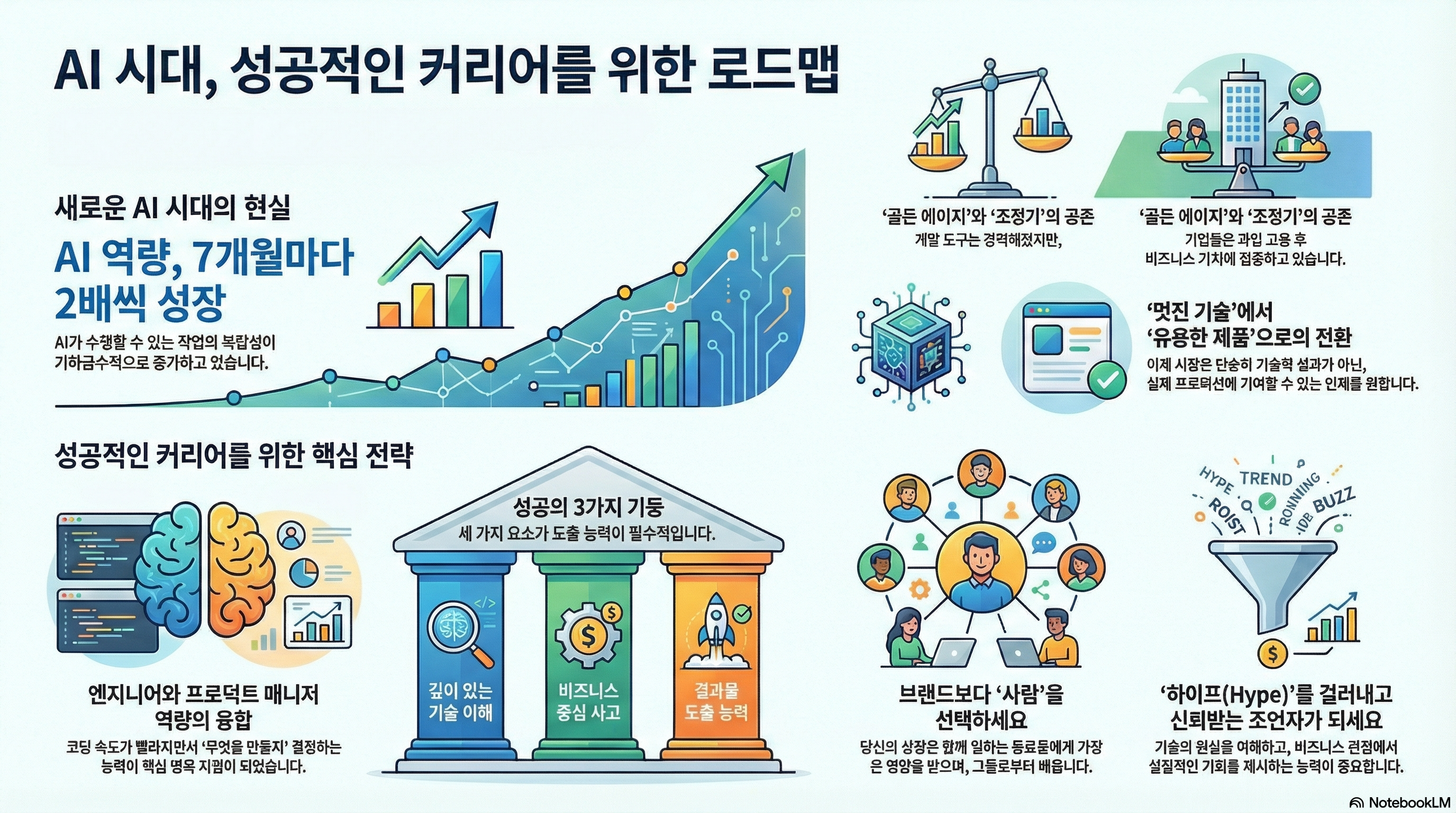 AI 분야의 커리어는 엄청난 기대와 기회, 그리고 동시에 상당한 불확실성으로 가득 차 있습니다. AI가 수행할 수 있는 작업의 복잡성이 7개월마다 두 배씩 증가한다는 연구 결과가 있을 정도로 기술의 발전 속도는 현기증이 날 정도입니다. 이러한 격변의 시기에 기술 전문가로서 어떤 길을 가야 할지 고민하는 것은 당연합니다.