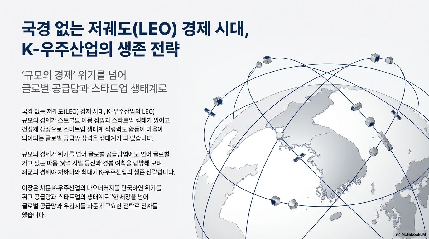 한국 우주 산업은 지금 중대한 기로에 서 있습니다. 발사 빈도를 연 6회 이상으로 끌어올리고, 가성비 높은 주력 로켓을 확보하며, 정부가 민간의 든든한 '앵커 테넌트'가 되어준다면 'K-LEO'는 우리 경제의 새로운 심장이 될 것입니다.