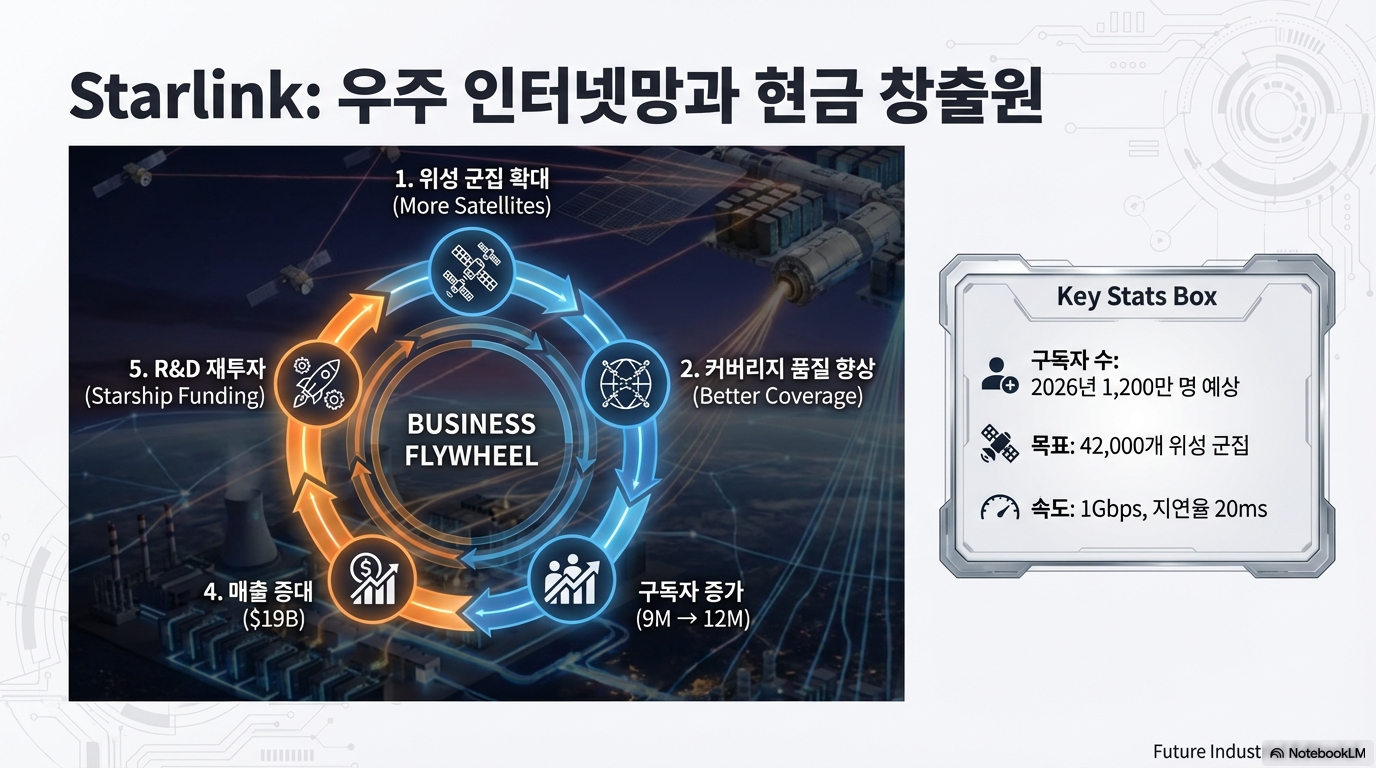 이는 전체 예상 매출의 약 83%가 스타링크에서 발생한다는 의미입니다. 여기서 주목할 점은, 이러한 매출 구조가 스페이스X를 단순한 로켓 제조 및 발사 기업이 아닌, 막대한 가입자 기반을 둔 구독형 플랫폼 비즈니스로 재정의한다는 것입니다. 이는 투자자들이 기업 가치를 평가하는 방식을 근본적으로 바꾸는 핵심 요인입니다. 2026년까지 1,200만 명에 이를 것으로 추정되는 가입자 수는 스페이스X가 글로벌 통신 플랫폼 기업으로 진화하고 있음을 명확히 보여줍니다.