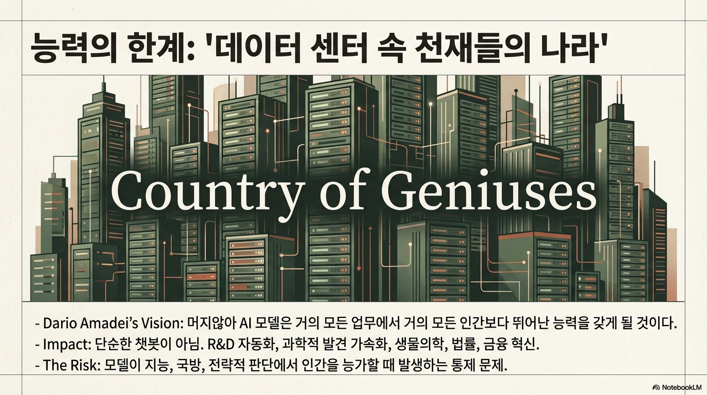 결국 그들의 여정은 인류가 '데이터센터 안의 천재들의 나라'라고 불릴 만큼 강력한 AI를 어떻게 책임감 있게 만들어갈 것인지에 대한 질문과 맞닿아 있습니다. 앤트로픽의 신중한 접근 방식이 기하급수적으로 가속화되는 경쟁 속에서 끝까지 지속될 수 있을까요? 아니면 그들 스스로가 경고했던 위험을 감수하며 더 빠르게 확장해야 하는 역설에 직면하게 될까요? 그 답이 AI의 미래를 결정할 것입니다.