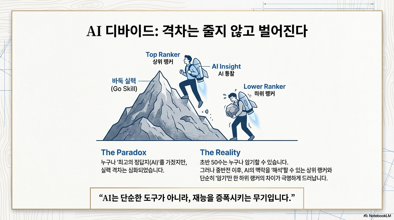 AI가 제시하는 수는 그 의미를 깊이 있게 이해하고 응용할 수 있는 최상위권 기사들에게만 온전한 무기가 되었다. 반면, 그 수준에 미치지 못하는 대다수 기사들에게 AI는 너무 어려운 '답안지'와 같아서 제대로 활용하기 어려웠다. 결국 AI를 얼마나 잘 소화하느냐에 따라 최상위권과 그 외 기사들 사이의 격차는 과거보다 훨씬 더 벌어지고 말았다.