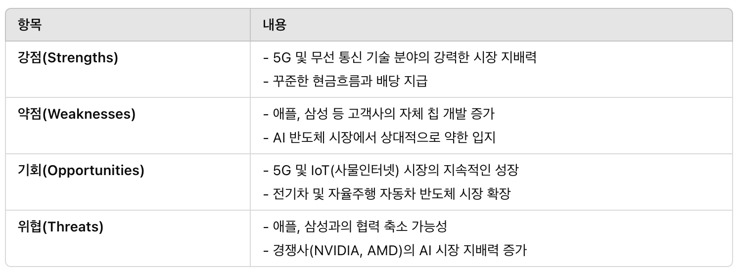 3. SWOT 분석 – 퀄컴의 투자 전망