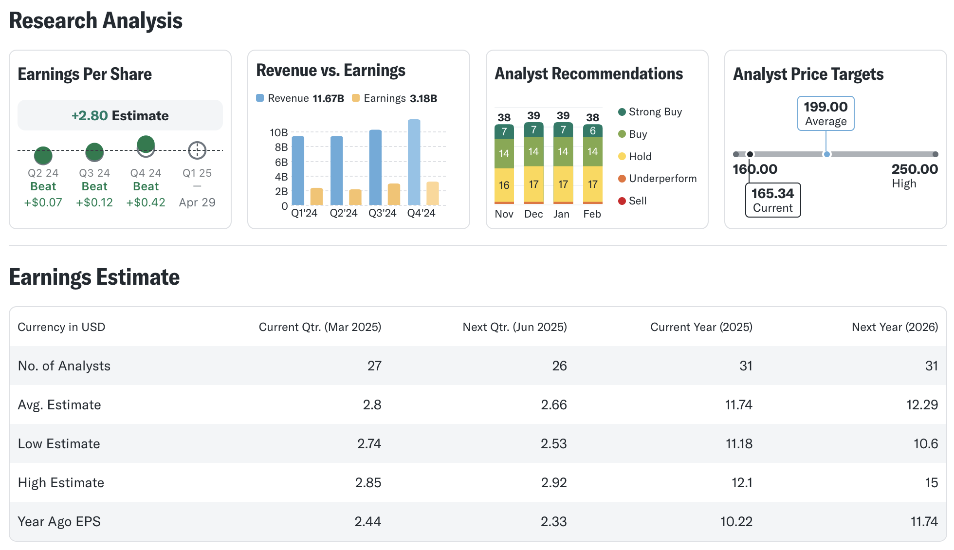 현재 애널리스트들이 제시한 퀄컴의 목표 주가는 $201로, DCF 분석 결과보다는 낮지만 여전히 현재 주가보다는 높은 수준이다. 이는 퀄컴이 단기적인 시장 변동성과 경쟁 압박에도 불구하고, 장기적인 성장 잠재력을 지닌 기업임을 시사한다.