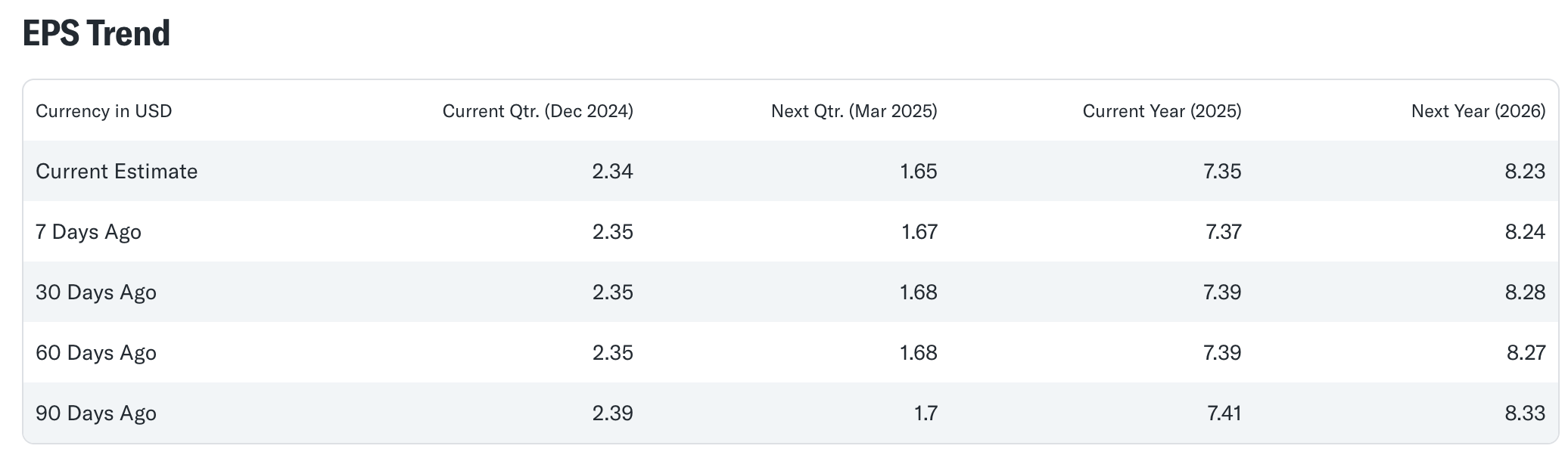 애플은 2025 회계연도 1분기에서 총 1,243억 달러의 매출과 2.40달러의 주당순이익(EPS) 을 기록하며 시장 예상을 상회했습니다. 이는 각각 전년 동기 대비 4% 및 10% 증가한 수치입니다.