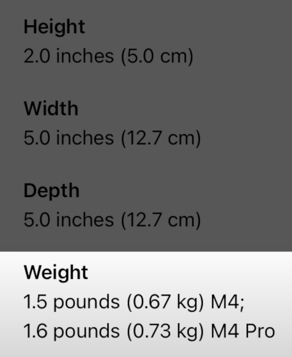 - 디자인 및 크기: M4 Pro Mac Mini는 가로세로 12.7cm, 높이 5cm의 컴팩트한 크기로, 이전 모델보다 작아진 디자인을 채택했습니다. 무게는 약 0.73kg으로, 휴대성과 공간 활용성이 뛰어납니다.
