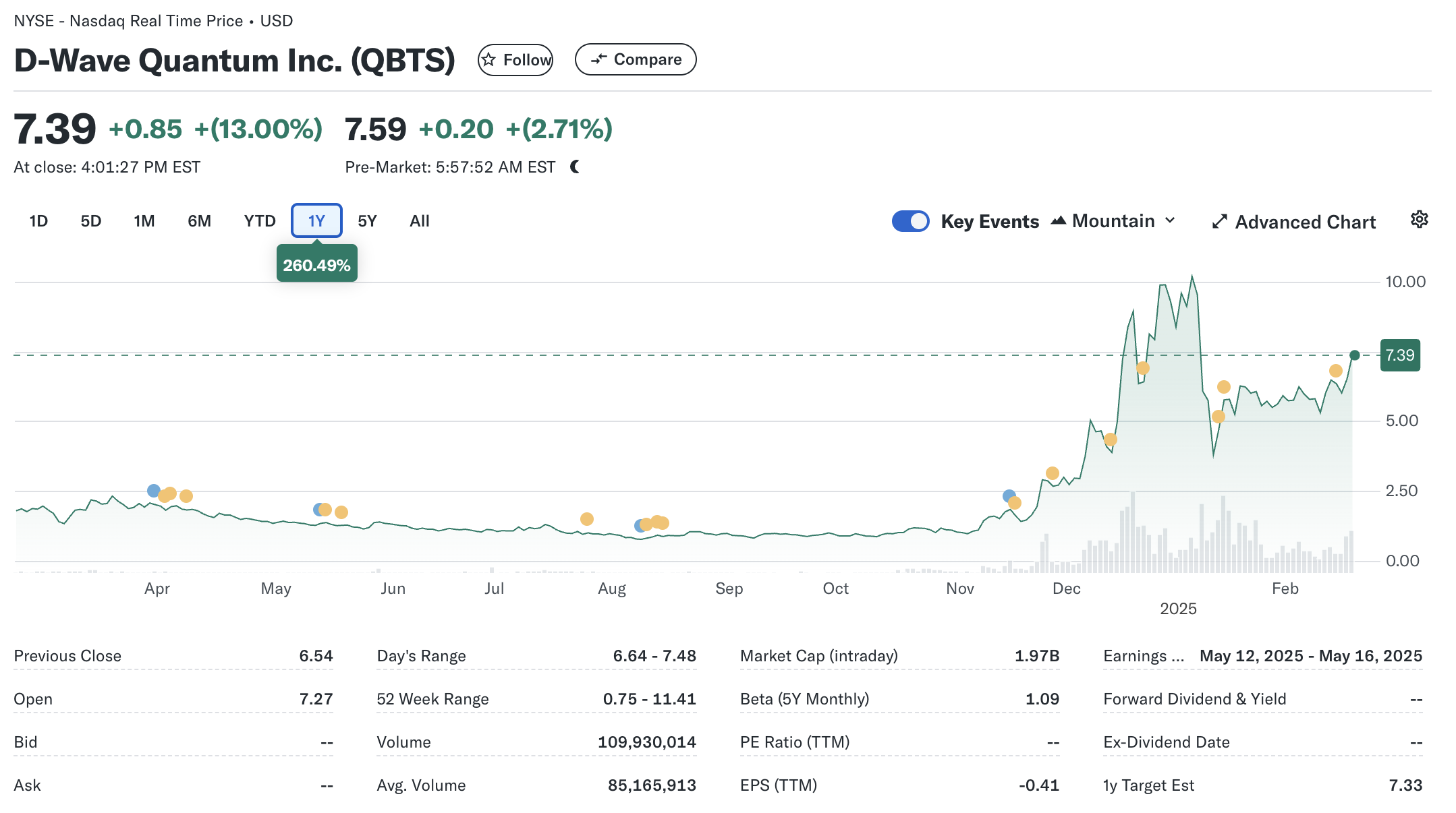 - D-Wave (QBTS) – 7% 상승