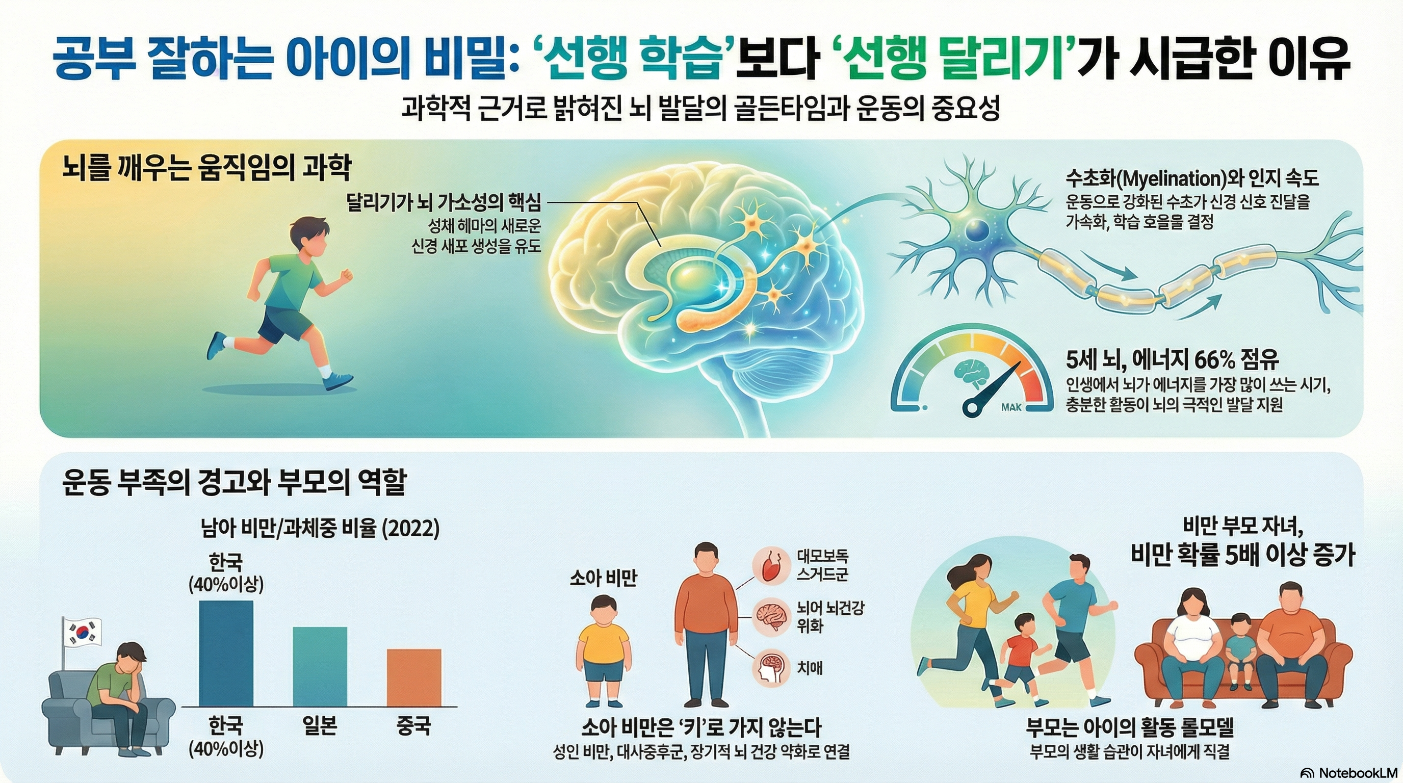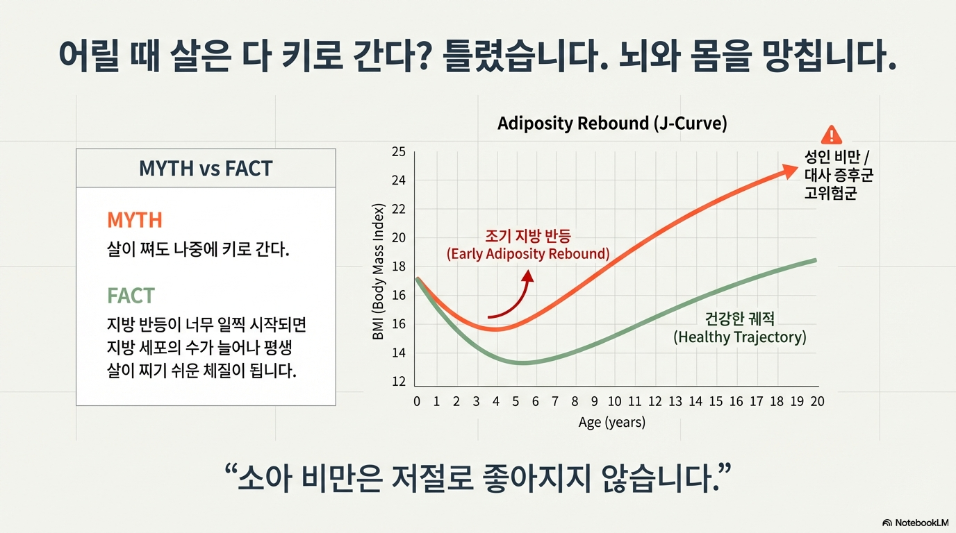 자녀가 똑똑하고 성공적으로 자라기를 바라는 것은 모든 부모의 마음입니다. 그래서 우리는 아이의 지능을 위해 값비싼 교구를 사고 선행 학습에 열을 올립니다. 특히 포동포동한 아이를 보며 '어릴 때 살은 다 키로 간다'는 말을 위안처럼 되뇌곤 합니다.