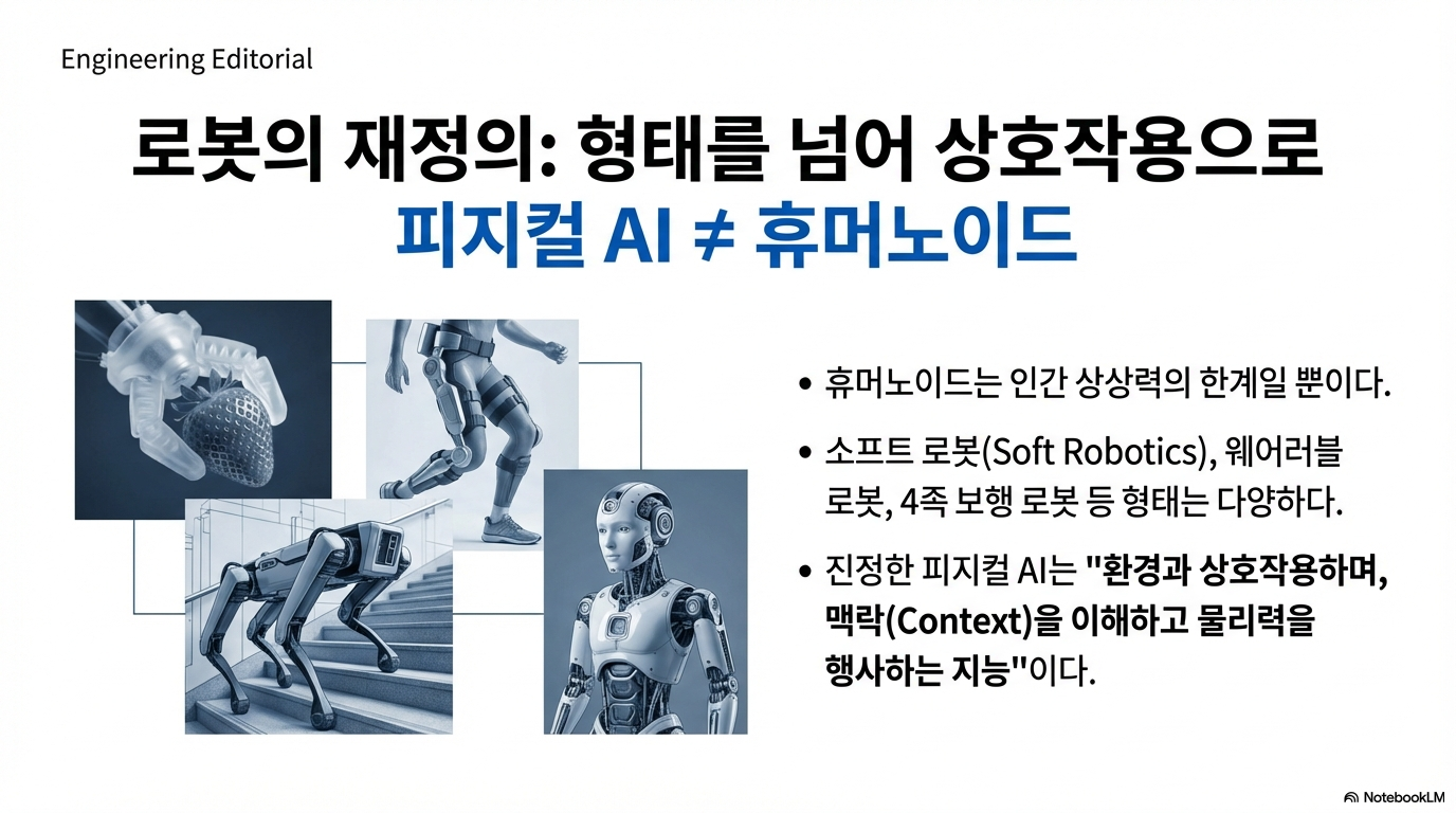 피지컬 AI는 단순히 인간을 닮은 '휴머노이드'에 갇히지 않습니다. 김 교수는 휴머노이드가 오히려 "인간 상상력의 한계가 만든 틀"일 수 있다고 지적합니다. 미래의 피지컬 AI는 소프트 로봇, 웨어러블 로봇 등 더 다양한 플랫폼으로 확장될 것입니다.
