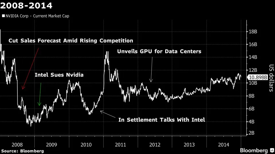 닷컴 버블 이후의 기간은 많은 기술 회사들에게 도전의 시기였으며, 엔비디아도 예외는 아니었습니다. 2008년 금융 위기와 AMD(Advanced Micro Devices)와 같은 경쟁사의 치열한 경쟁은 엔비디아의 회복력을 시험했습니다. 그러나 날씨 예측이나 석유 탐사와 같은 복잡한 컴퓨팅 작업을 위한 GPU로 데이터 센터 시장에 진출하겠다는 전략적 결정은 AI 분야에서의 미래 지배를 위한 토대를 마련했습니다.