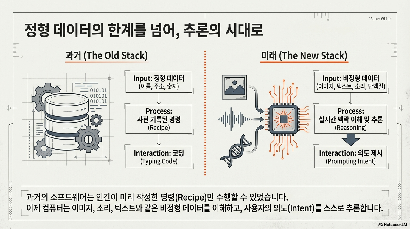 AI 사용의 장벽은 복잡한 코딩 기술이 아니라, 우리가 일상적으로 사용하는 '언어'입니다. 과거에는 우리가 컴퓨터를 프로그래밍하는 법을 배워야 했지만, 이제는 여러분 모두가 프로그래머가 될 수 있습니다. 자연어로 컴퓨터에게 무엇을 원하는지 말하기만 하면 되기 때문입니다.