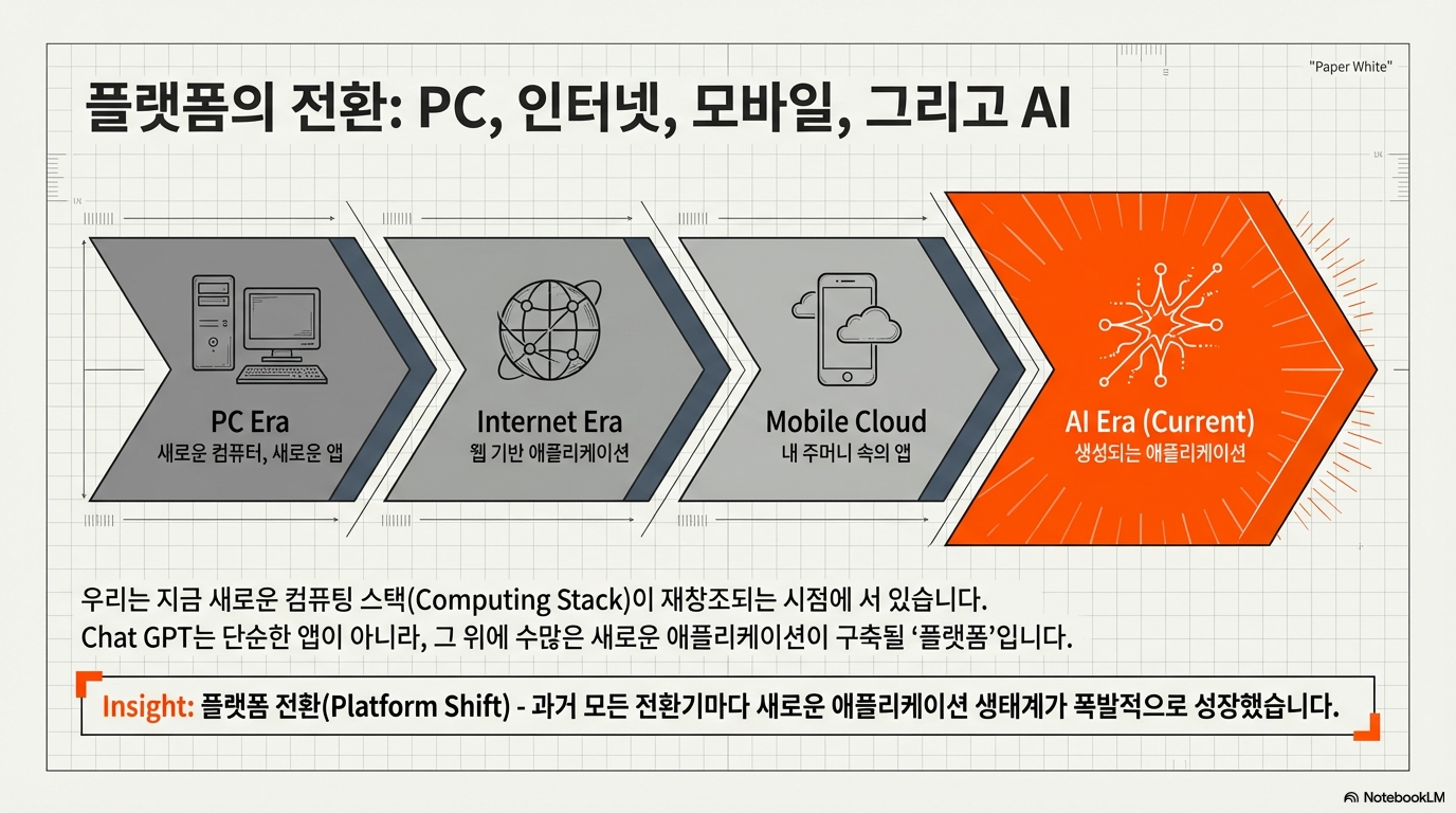 그의 관점에서 AI는 인간의 목적을 위협하는 존재가 아니라, 오히려 그 목적을 달성하도록 돕는 가장 강력한 도구입니다. 이 거대한 기술적 변화의 물결 속에서 우리는 두려움보다는 기회를 발견해야 합니다.