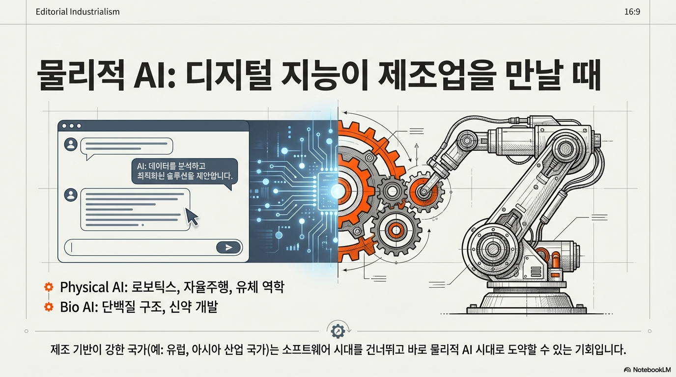 AI의 다음 개척지는 언어뿐만 아니라 물리학, 생물학, 화학 등 물리적 세계의 법칙을 이해하고 상호작용하는 '물리적 AI(Physical AI)'입니다.