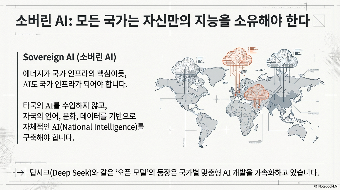 젠슨 황은 모든 국가가 자국의 언어와 문화를 '천연자원'으로 활용하여 자체적인 '국가 지능(national intelligence)'을 구축해야 한다고 강조합니다. 각국이 자체 AI 인프라에 투자함으로써 선진국을 따라잡고 고유한 경쟁력을 확보할 수 있다는 것입니다. 이는 특정 계층의 전유물이 아니라, 개발도상국을 포함한 모두에게 새로운 기회를 열어주는 기술의 민주화를 의미합니다.