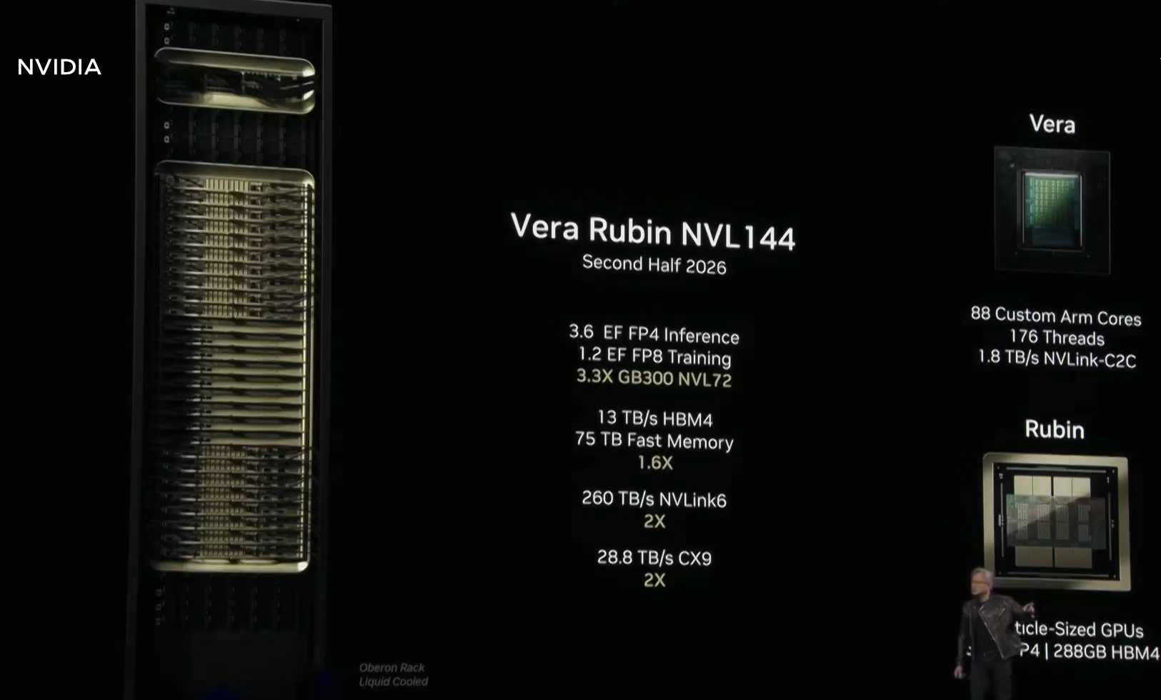 젠슨 황은 이번 발표에서 차세대 AI 칩 ‘루빈(Rubin)’ 시리즈를 공식적으로 공개했다. 루빈 시리즈는 현재 시장에서 최고 성능을 자랑하는 블랙웰(Blackwell) 시리즈를 뛰어넘는 성능을 갖춘 엔비디아의 최신 AI 칩이다.