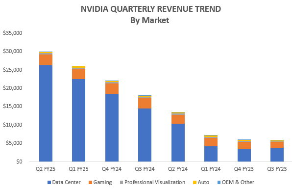 엔비디아(NVIDIA)는 최근 2025 회계연도 2분기 실적을 발표하며, 또 한 번 놀라운 성과를 보여주었습니다. 이번 분기 동안 엔비디아는 총 매출 300억 달러를 기록하며, 전년 동기 대비 122%의 놀라운 성장을 이뤄냈습니다. 비슷한 기간 동안 순이익도 168% 상승해, 회사의 전반적인 재무 상태가 크게 개선되었음을 나타냈습니다. 이러한 성과는 주로 AI와 데이터 센터 시장에서의 강력한 수요에 의해 견인되었습니다.