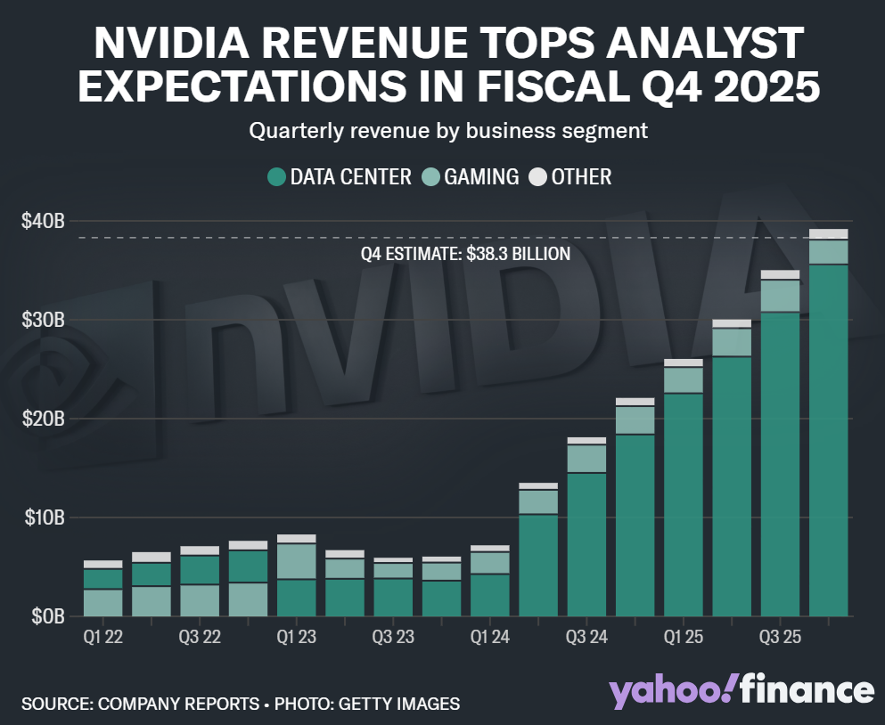 엔비디아(Nvidia, NVDA)는 2025 회계연도 4분기 실적 발표에서 또다시 시장의 기대를 뛰어넘는 성과를 기록하며 AI 반도체 업계의 절대 강자임을 입증했습니다. 이번 실적은 전년 대비 두 배 이상 성장한 수치로, 데이터 센터 부문의 폭발적인 성장이 전체 매출 신기록을 이끌었습니다.