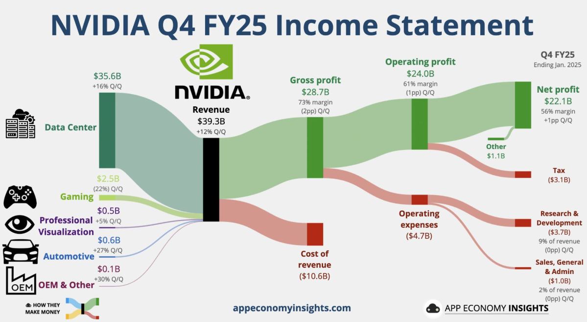 - 총 매출: $39.3B (전 분기 대비 +12%, 전년 대비 +78%)