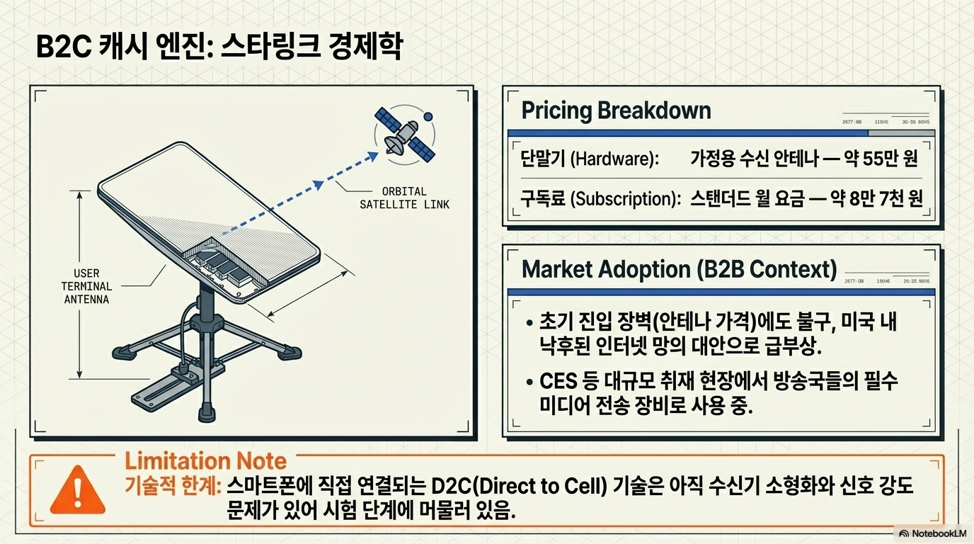 - 비용의 문턱: 현재 스타링크 안테나 가격은 한국 기준 약 550,000원, 월 이용료는 87,000원 수준입니다. 미국 CES 등에서 선보인 '미니' 안테나처럼 보편화가 진행되고는 있지만, 대중적인 통신 수단이 되기엔 아직 경제적 장벽이 존재합니다.
