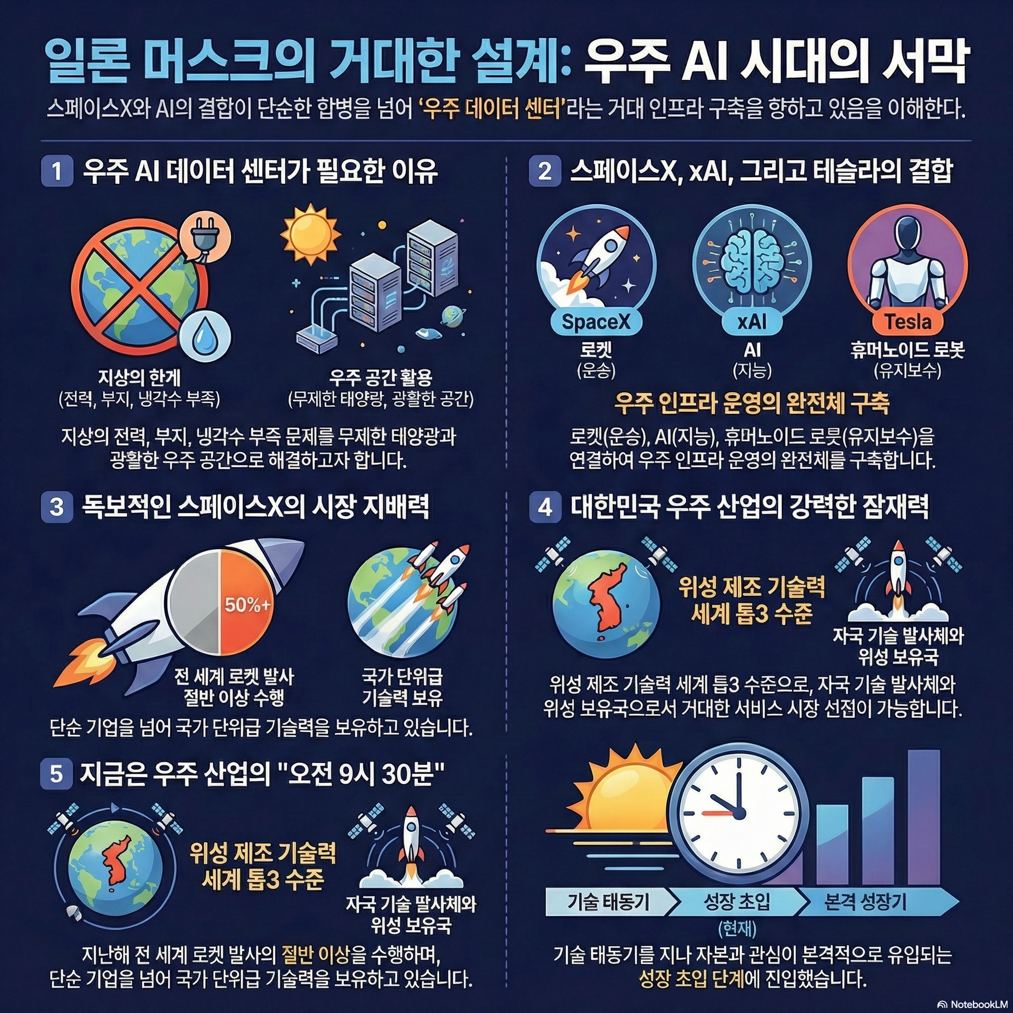 "스페이스X는 이미 기업 단위를 넘어 국가 단위의 기술력을 보유한 '1st Tier'에 올라섰습니다. 합병의 성패를 판단하는 기준은 '테슬라에 이익인가'가 아니라, '일론 머스크의 지배력에 유리한가'가 되어야 합니다."