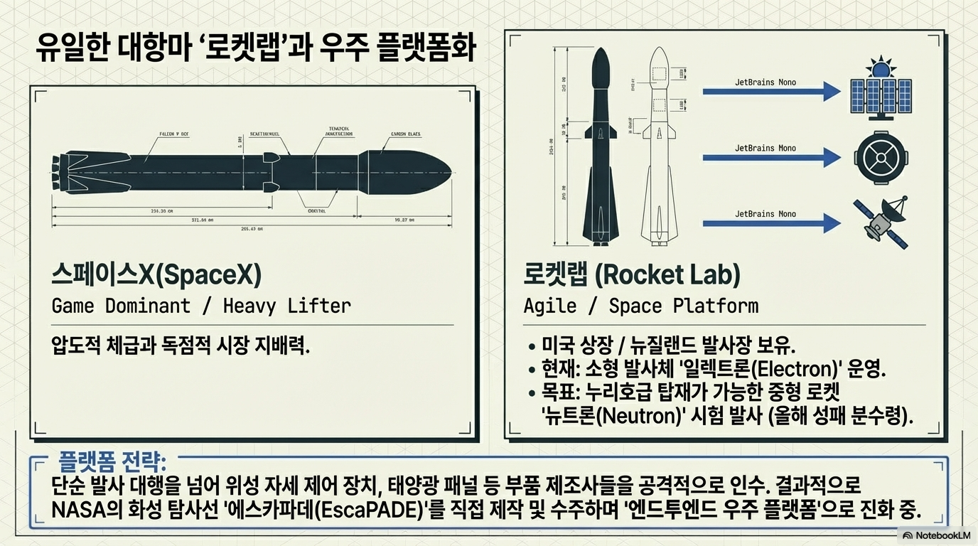 - 로켓 발사: 스페이스X의 유일한 대항마로 꼽히는 **'로켓랩(Rocket Lab)'**은 올해 중대형 로켓 '뉴트론(Neutron)'의 시험 발사라는 중대한 모멘텀을 앞두고 있습니다.