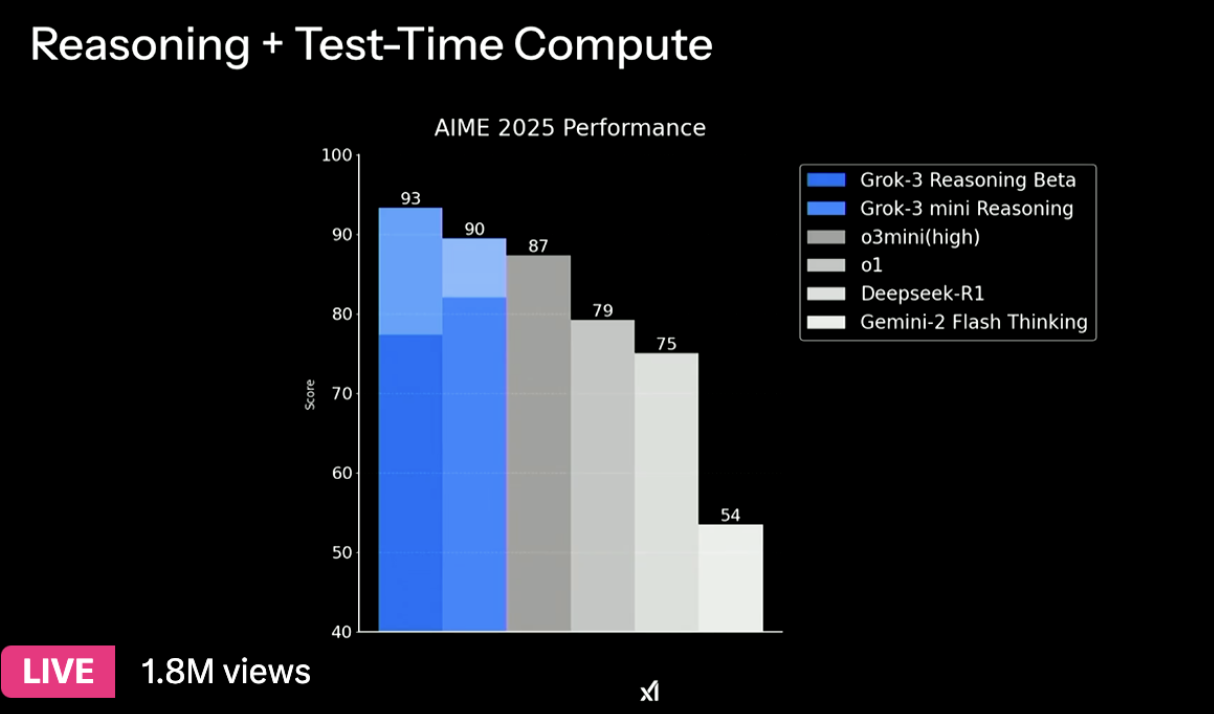 - Grok 3는 AIME 2025 테스트에서 OpenAI의 o3-mini-high 모델을 능가하며, 최신 AI 모델 중 최상위권 성능을 기록했습니다.