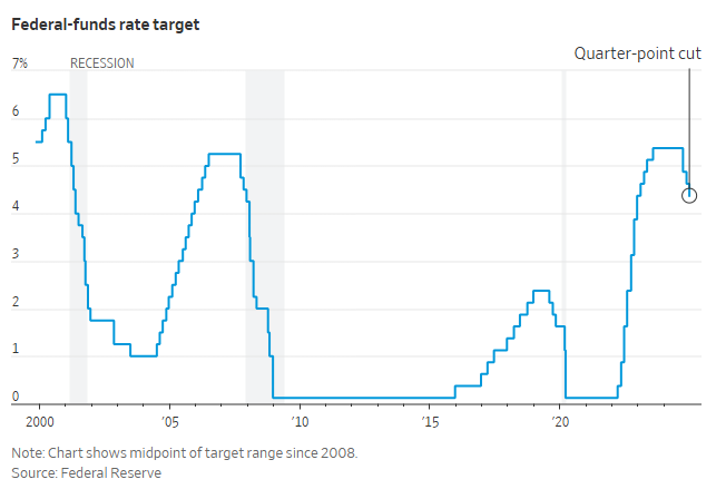 미국 연방준비제도(Fed)가 기준금리를 0.25% 포인트 인하하며 금리를 4.25~4.5%로 낮췄습니다. 이는 2년 만의 최저 수준으로, 이번 결정은 연준 내부에서도 팽팽한 의견 차이가 있었음을 보여줍니다. 특히 제롬 파월 연준 의장은 이번 결정이 “근소한 차이로 이루어진 선택”이었다고 밝혔습니다. 연준은 앞으로 금리 인하 속도를 늦추며 신중한 접근을 이어갈 것을 시사했습니다.