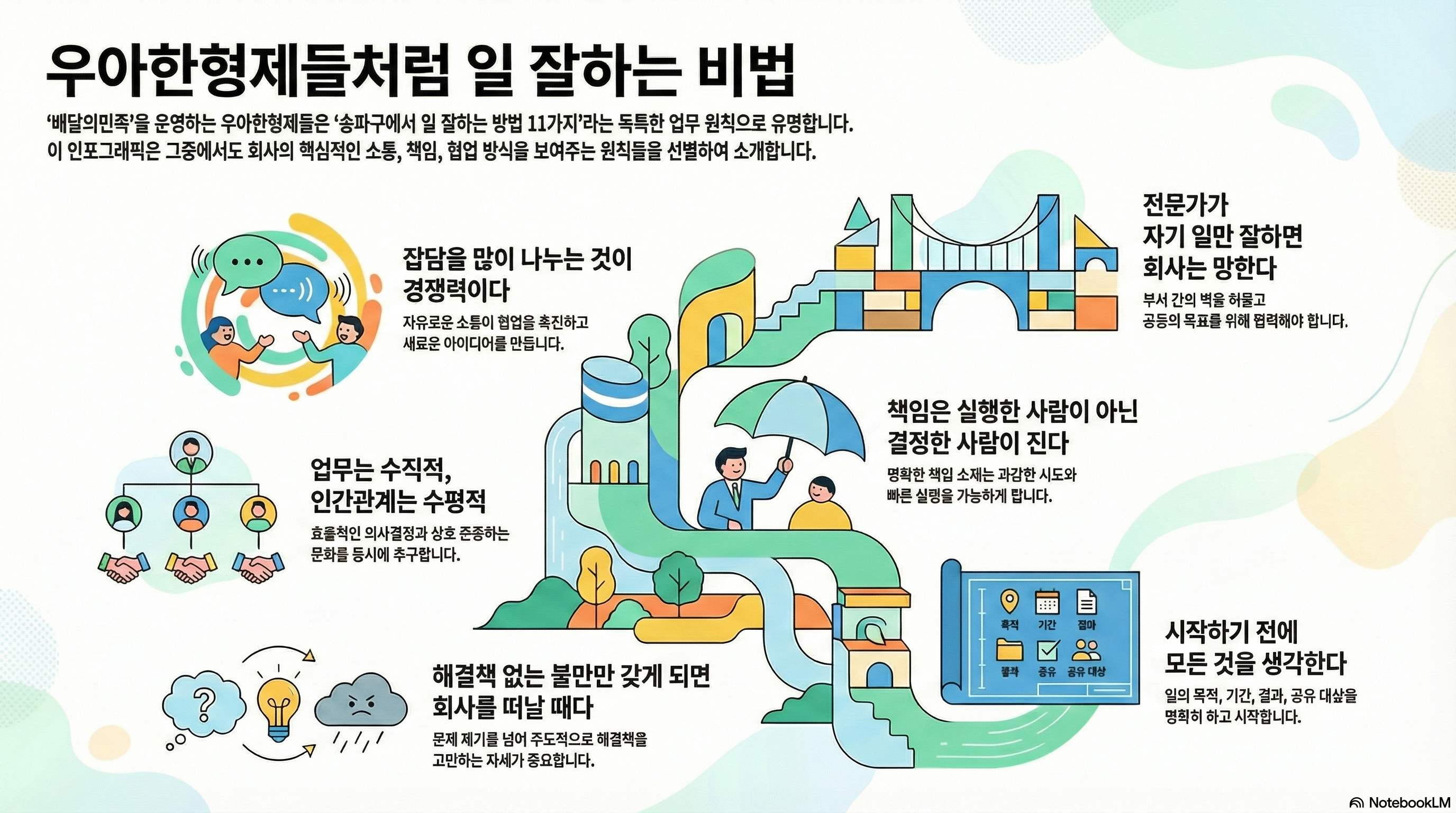 이 11가지 원칙은 감성적인 구호가 아니라, 조직을 효율적으로 움직이게 하는 **실행 규칙(Operating Rules)**에 가깝습니다. 팀에 적용할 때는 한 번에 전부 바꾸기보다,
