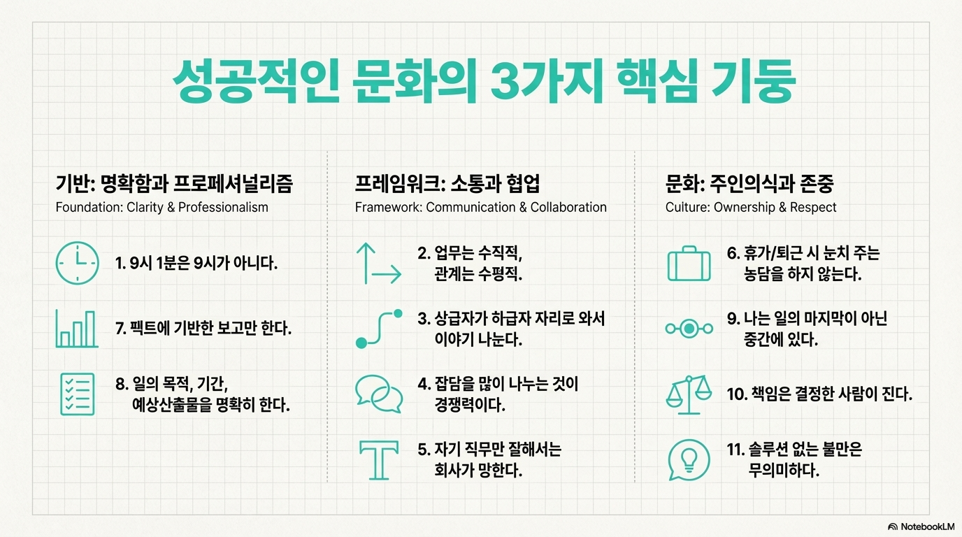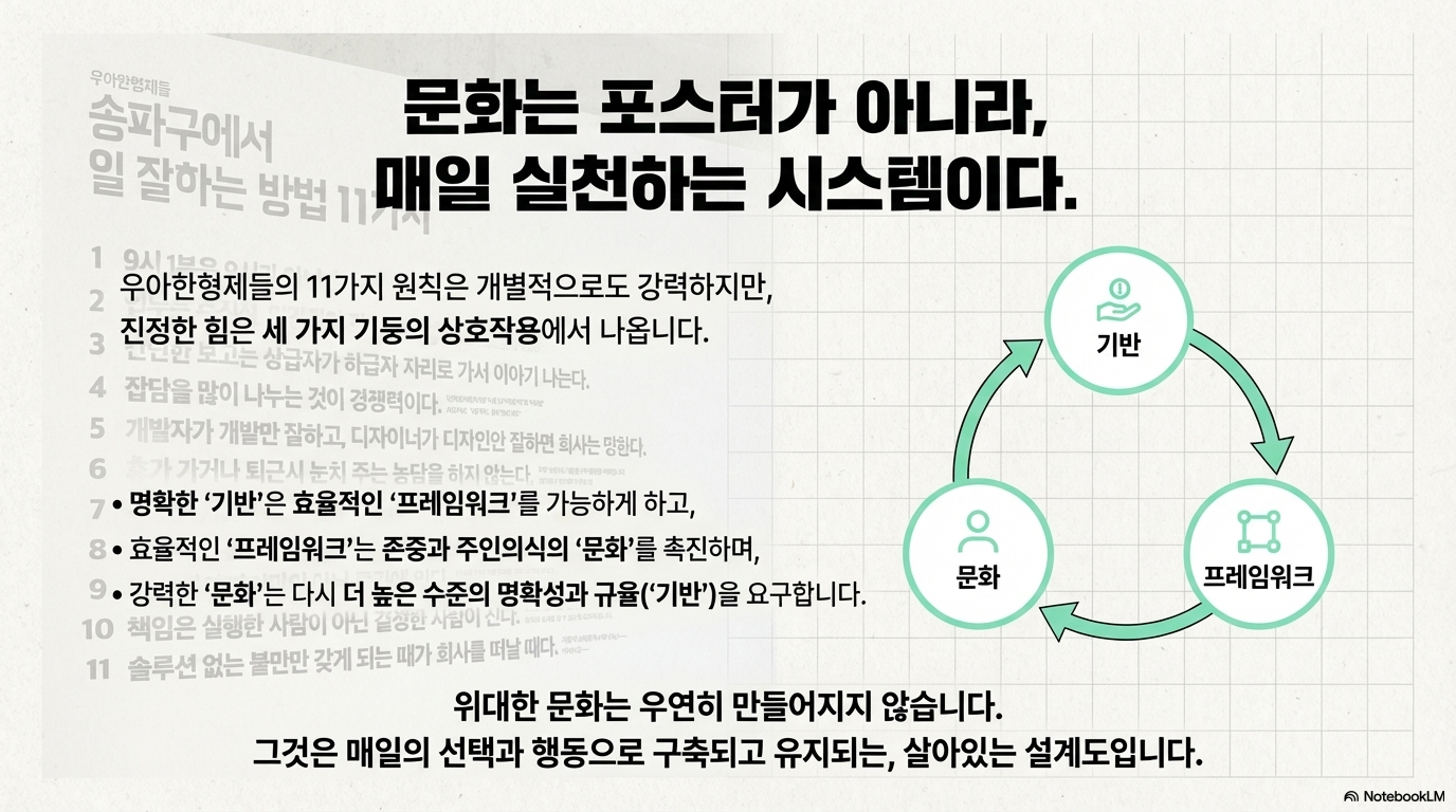 마무리: 11가지는 ‘문화’가 아니라 ‘운영체계’다 ✅