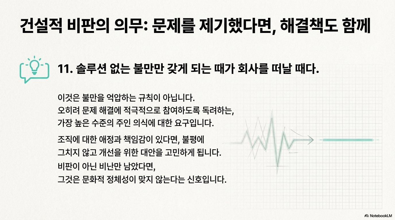 불만은 조직 생활에서 자연스러운 감정입니다. 문제는 불만이 행동으로 전환되지 못할 때 발생합니다.