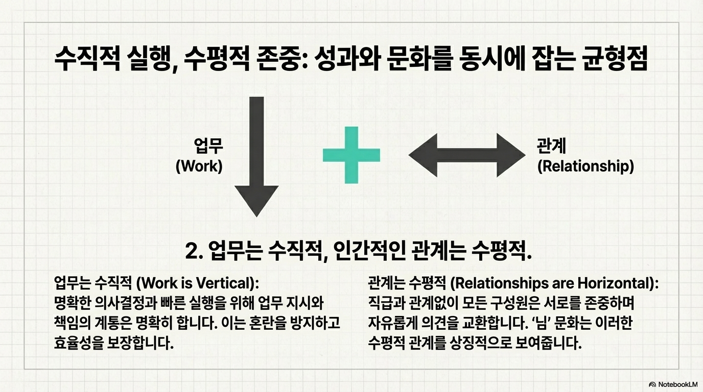 2) 관계: “업무는 수직, 인간관계는 수평” 🤝
