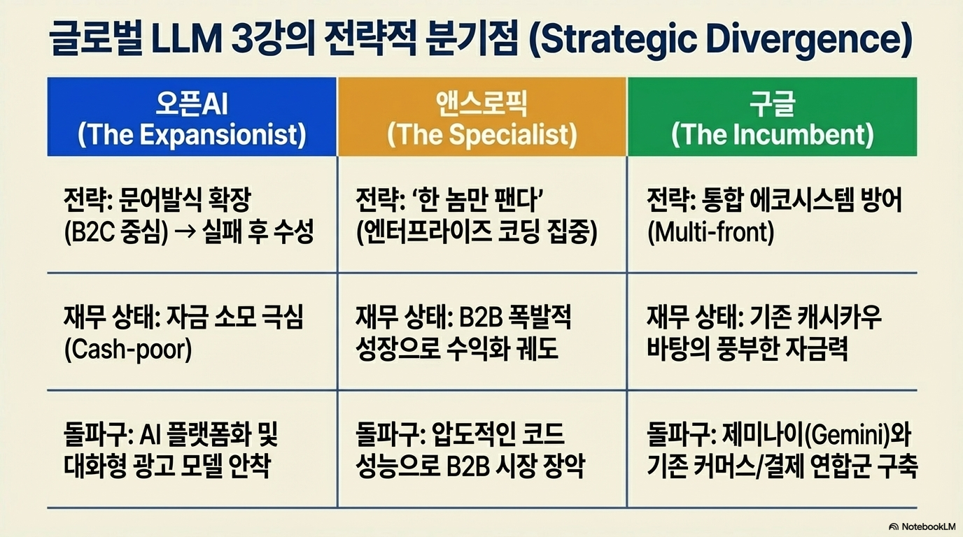 2. [Takeaway 1] '문어발식 확장'의 부메랑: 오픈AI vs 앤스로픽
