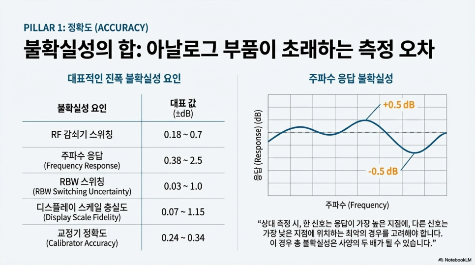 물론 현대 기술은 이러한 근본적인 문제를 완화하는 데 큰 발전을 이루었습니다. 예를 들어, 구형 아날로그 로그 증폭기의 정확도가 ±1dB 영역이었던 반면, 최신 디지털 IF 기술은 ±0.07dB 수준의 월등한 충실도를 자랑합니다. 이는 엔지니어들이 더 큰 목표를 달성하기 위해 의도적으로 시스템에 도입한 '결함'을 얼마나 영리하게 관리하고 극복하는지를 보여주는 심오한 역설입니다.