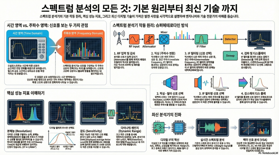 이를 통해 스펙트럼 분석기라는 도구가 단순히 신호를 보여주는 것을 넘어, 우리가 신호를 이해하는 방식 자체에 깊이를 더해준다는 것을 알 수 있습니다. 보이지 않는 것을 보게 해주는 기술의 이면에는 이처럼 깊은 과학적 원리와 현실적 타협이 공존합니다.