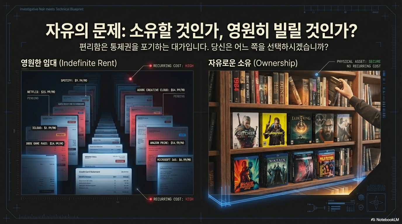 글을 마치며 여러분께 묻고 싶습니다. "당신의 디지털 라이브러리에 가득 찬 수많은 콘텐츠와 기능 중, 내일 당장 해당 기업이 서비스를 종료하거나 파산하더라도 당신 곁에 온전히 남을 수 있는 것은 무엇입니까?"