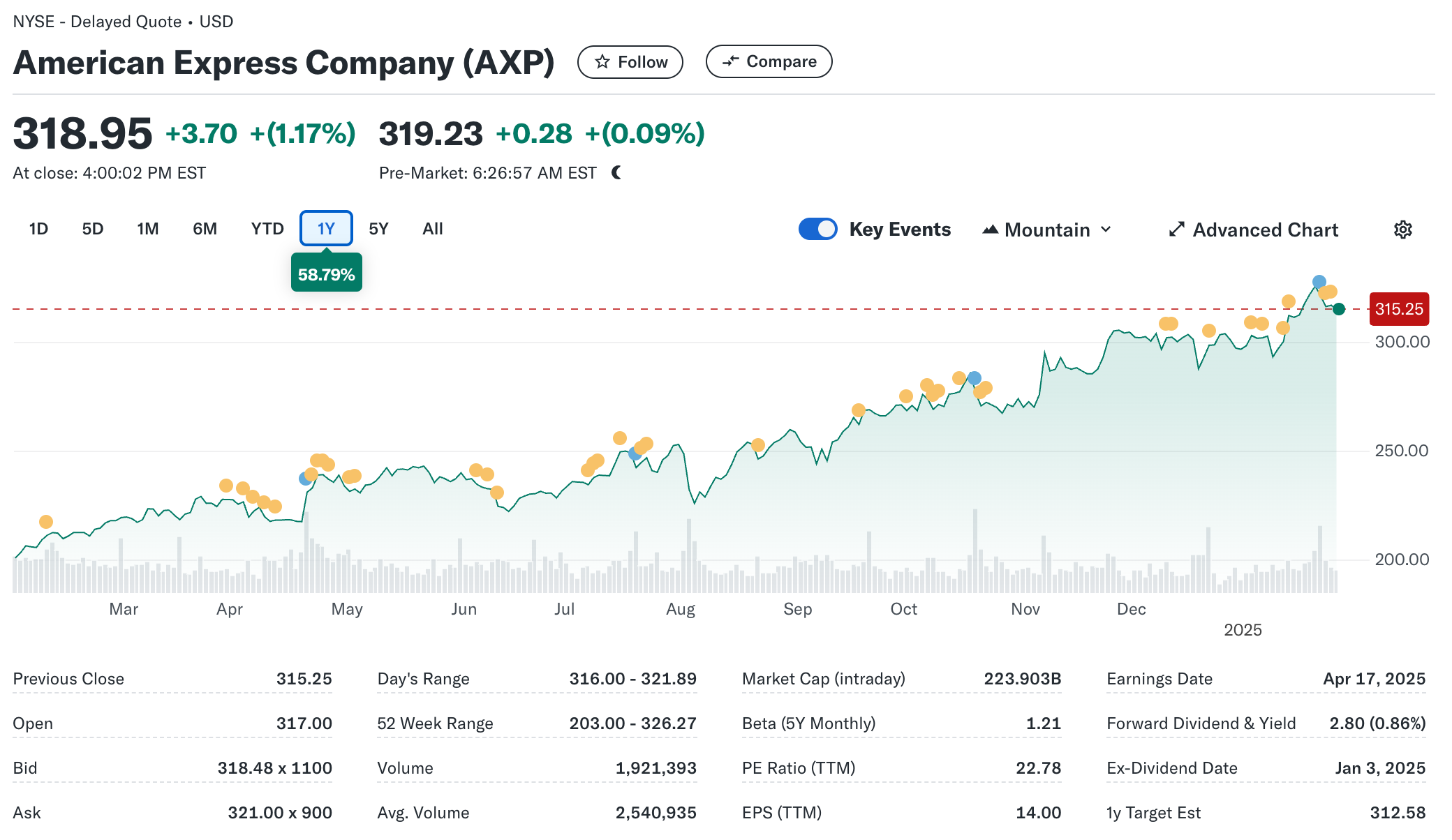아메리칸 익스프레스(American Express, NYSE: AXP)는 미국을 대표하는 프리미엄 신용카드 및 결제 서비스 기업으로, 전 세계적으로 강력한 브랜드 파워를 자랑합니다.